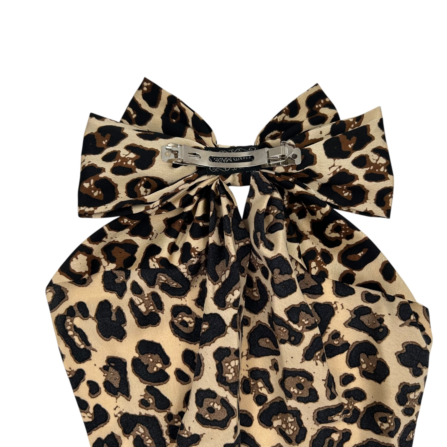 Κλιπ για τα μαλλιά με φιόγκο σατέν μακρύ λεοπάρ