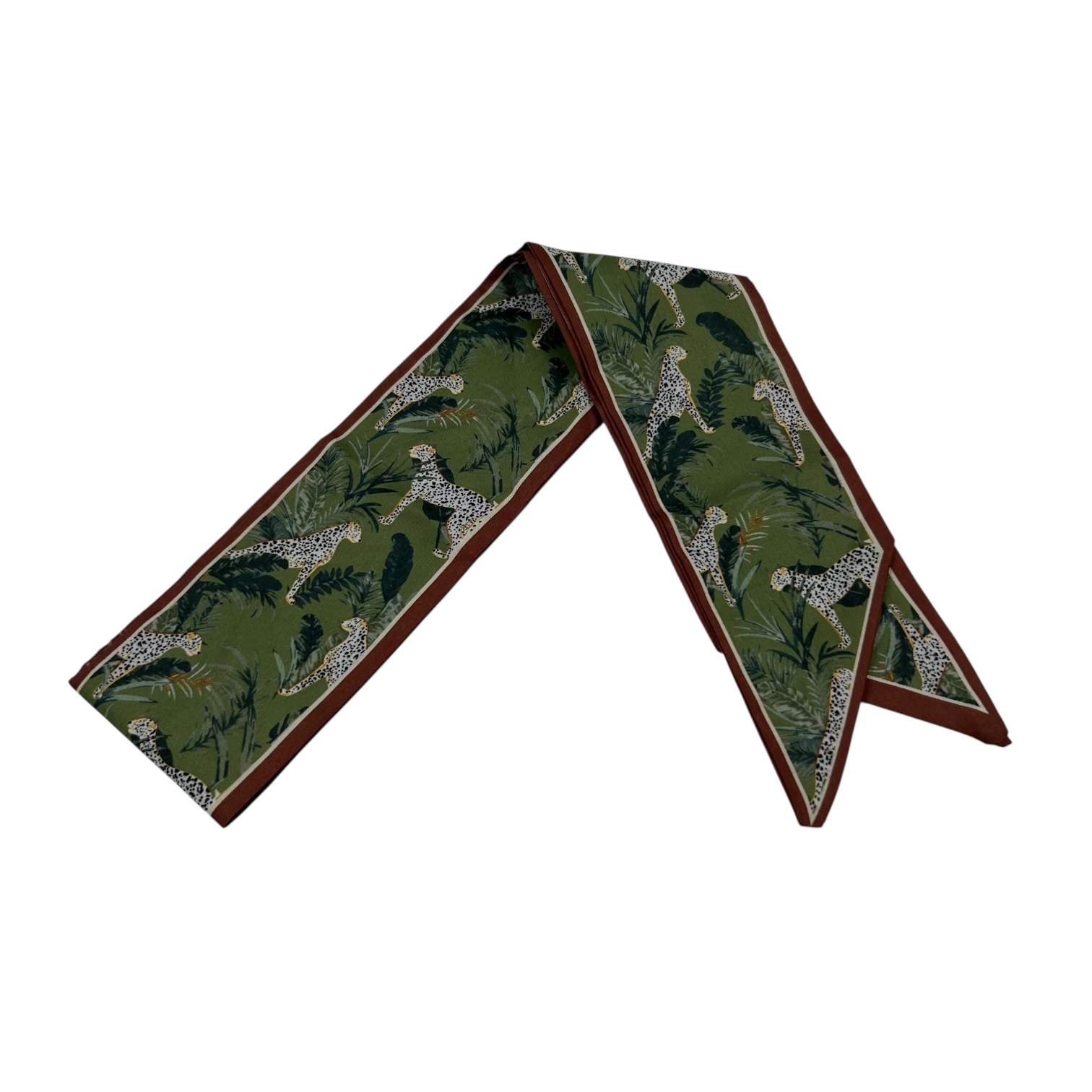 Μαντήλι εμπριμέ για τα μαλλιά και για την τσάντα σας. Καφέ με πράσινο. Διάσταση: 86 εκ.