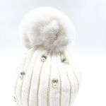 Σκούφος πλεκτός με πέρλες και στρας λευκό