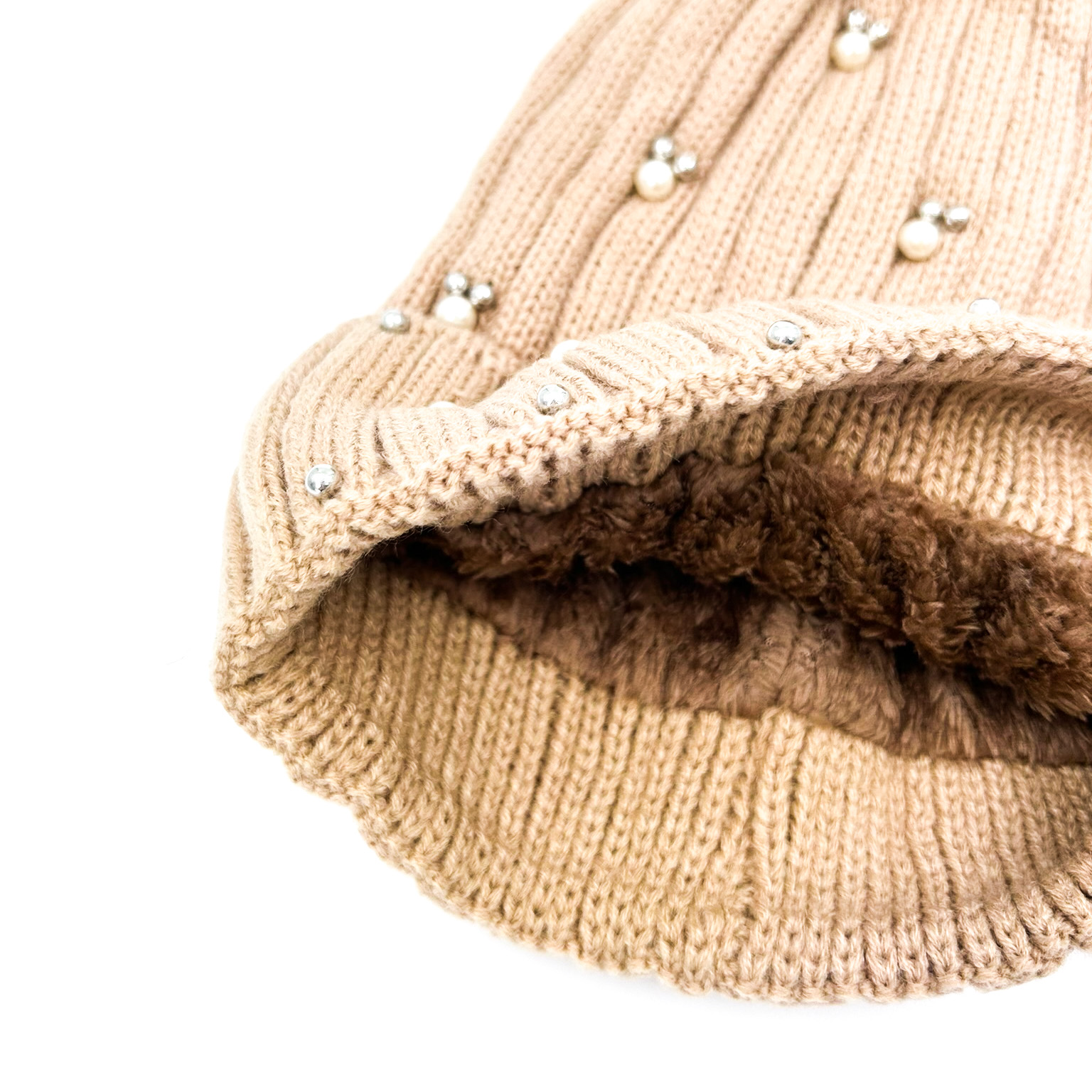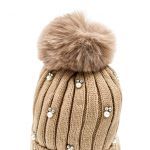 Σκούφος πλεκτός με πέρλες και στρας μπεζ