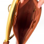 Τσαντάκι καφέ με αλυσίδα για να μπορεί να φορεθεί και χιαστί αλλά και χερούλι σε χρυσό χρώμα για να κρατηθεί στο χέρι. Κλείνει με μαγνήτη και διαθέτει και εσωτερική θήκη με κλείσιμο με φερμουάρ. Διαστάσεις: 33*22 εκ.