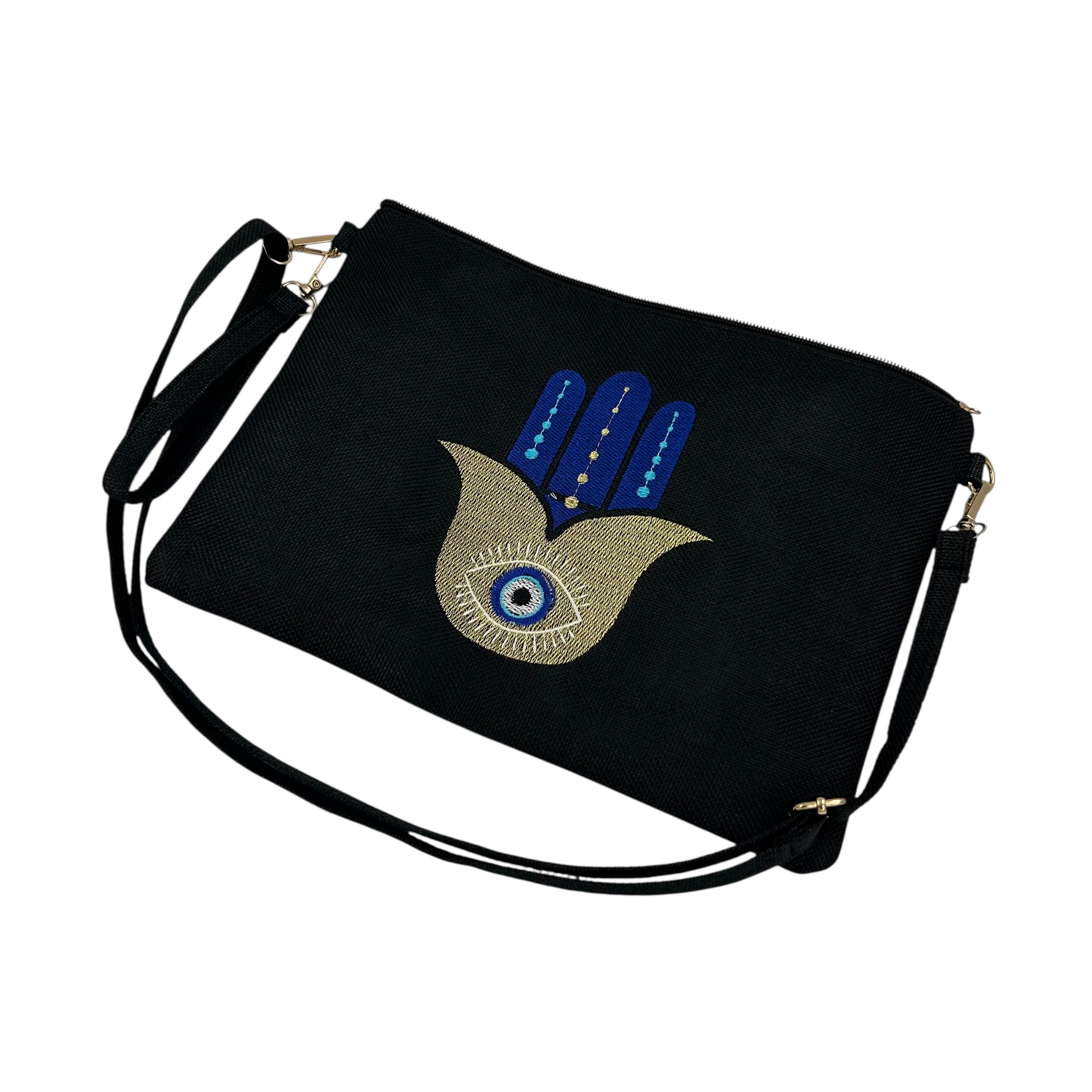 Τσαντάκι φάκελος από ψάθα hamsa Μαύρο
