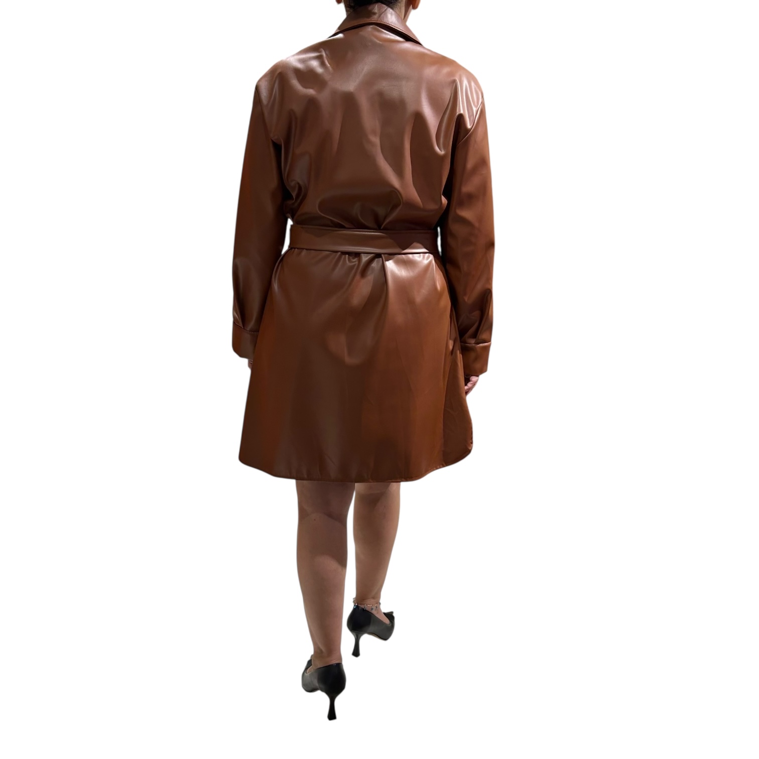 One size φόρεμα δερματίνη ελαστικό ύφασμα σε καφέ απόχρωση. Διαστάσεις: Στήθος: έως 110, Μέση: έως 110, Περιφέρεια: έως 120 εκ. Σύνθεση: 60 % polyurethane, 40% polyester