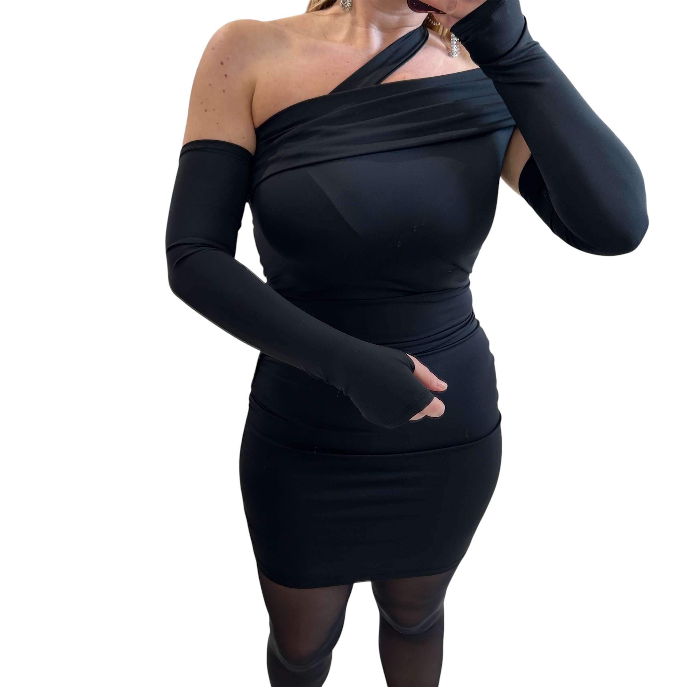 Φόρεμα μαύρο με αποσπώμενο μανίκι