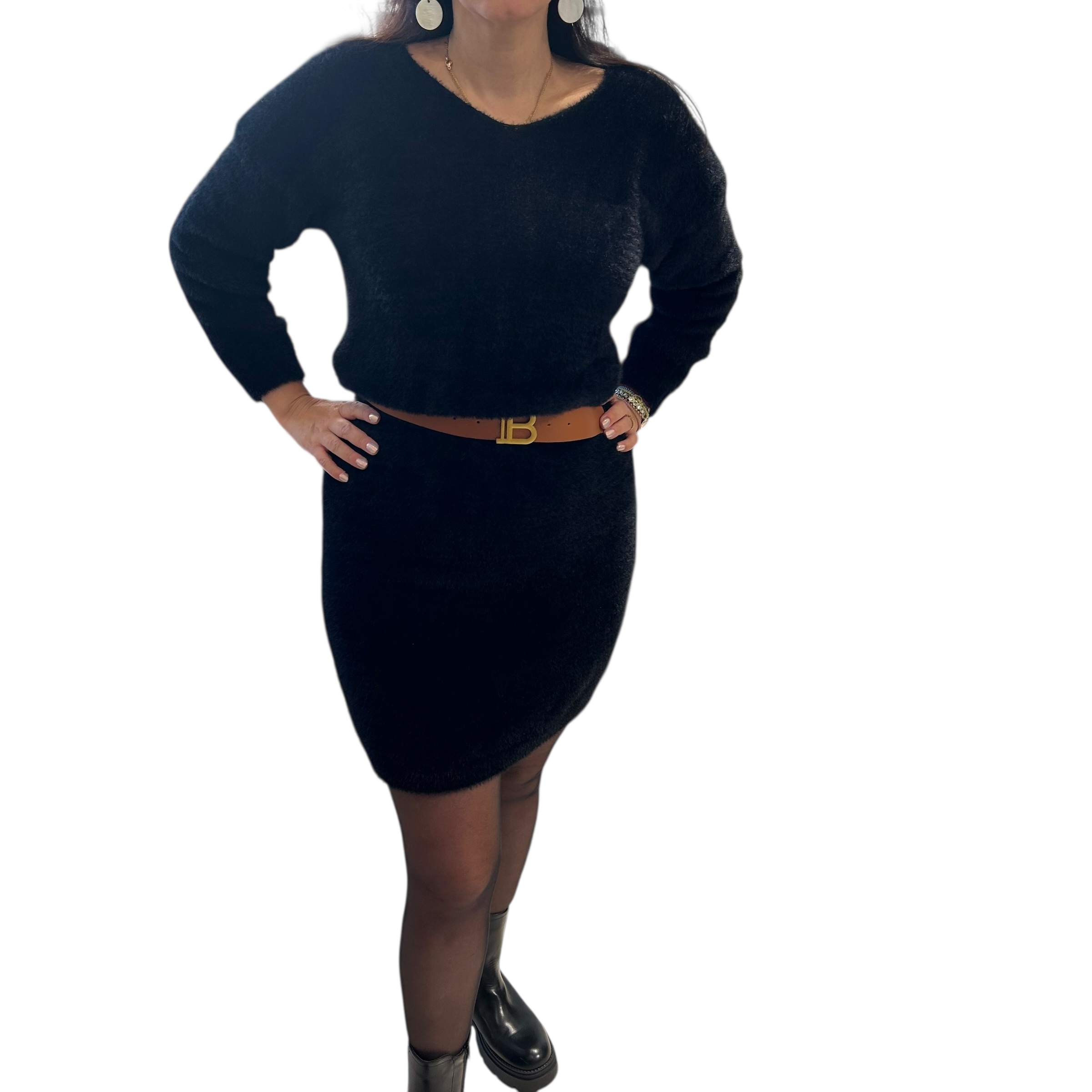 One size ελαστικό φόρεμα καλύπτει έως 2 xlarge. Διαθέτει δική του ζώνη σε καφέ απόχρωση.
