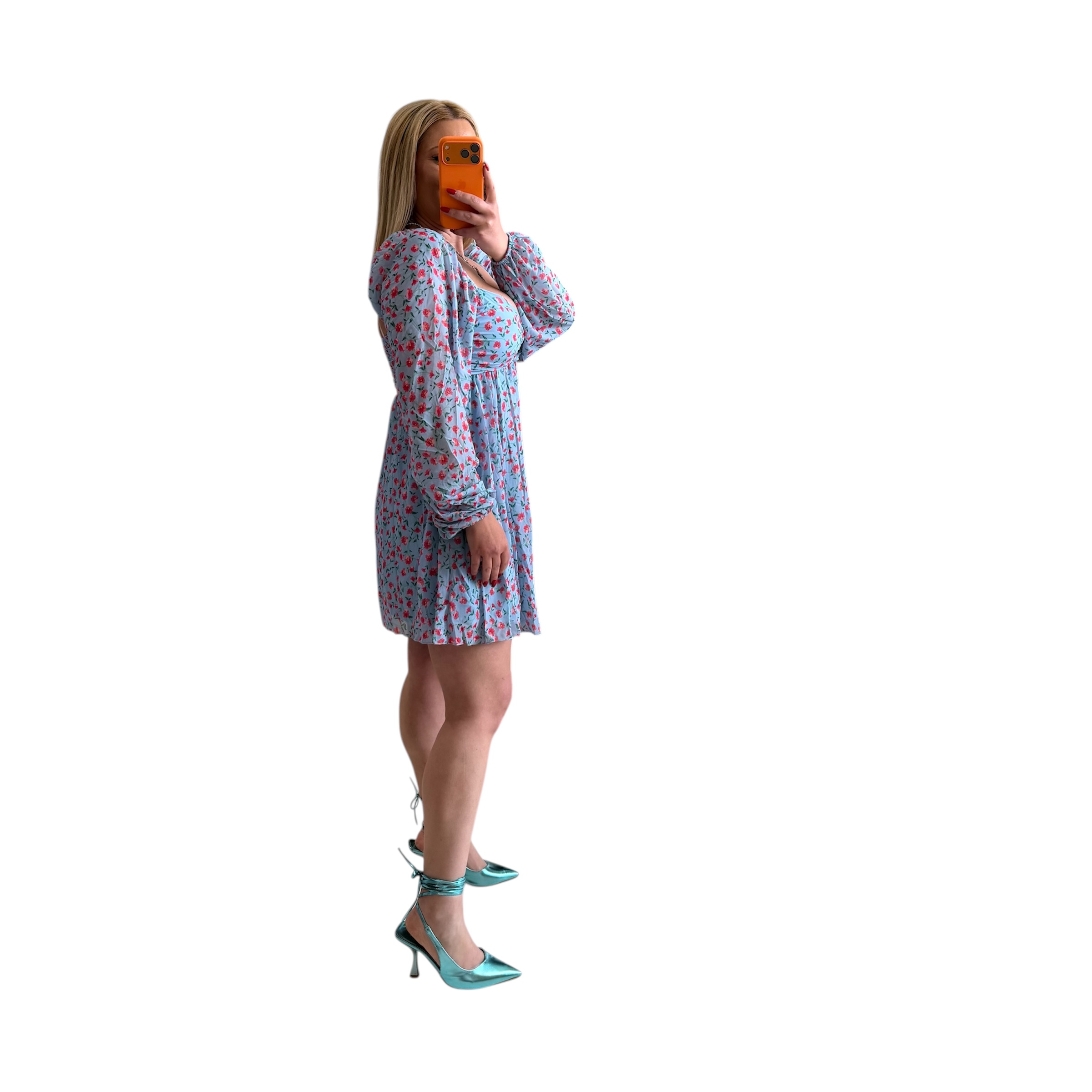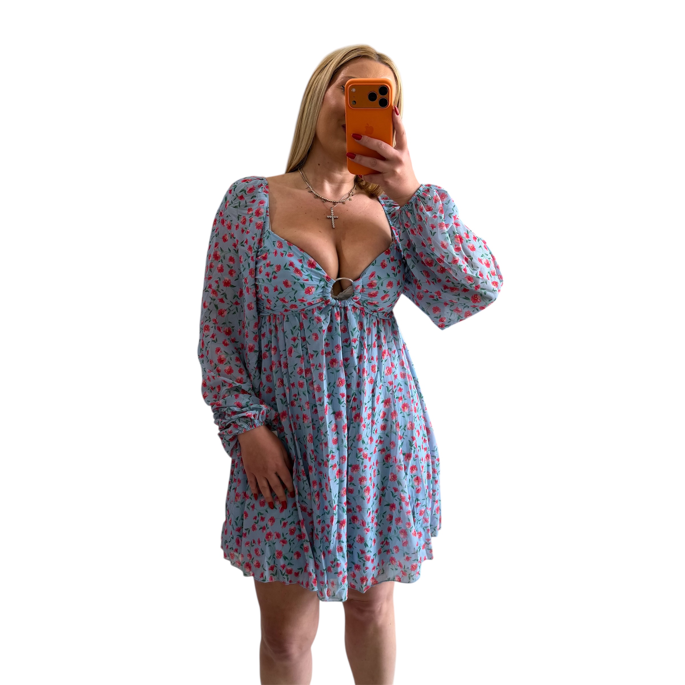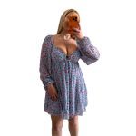 Φόρεμα μίνι φλοράλ μακρυμάνικο με cups γαλάζιο