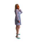One size φόρεμα μακρυμάνικο μίνι γαλάζιο με λεπτομέρειες από διακριτικά λουλούδια σε γαλάζιο. Διαθέτει cups και σφηκοφωλιά στο πίσω μέρος της πλάτης. Το φόρεμα είναι Α γραμμή. Στο μπροστικό μέρος διαθέτει στρογγυλή αγκράφα σε ασημί χρώμα. Διαστάσεις: Στήθος:100 εκ., Μέση:100 εκ., Περιφέρεια:120εκ. Σύνθεση υφάσματος: 100% polyester
