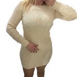 Μαύρο φόρεμα μακρυμάνικο μίνι ριμπ ελαστικό με πέρλες στο μπροστινό μέρος του και στα μανίκια. Έιναι one size αρκετά ελαστικό. Διαστάσεις: Στήθος: 70 εκ έως 120 εκ., Μέση: 70 εκ έως 120 εκ., Περιφέρεια: 70 εκ έως 120 εκ. Σύνθεση:70% viscose, 30% polyamide, 5% elastan