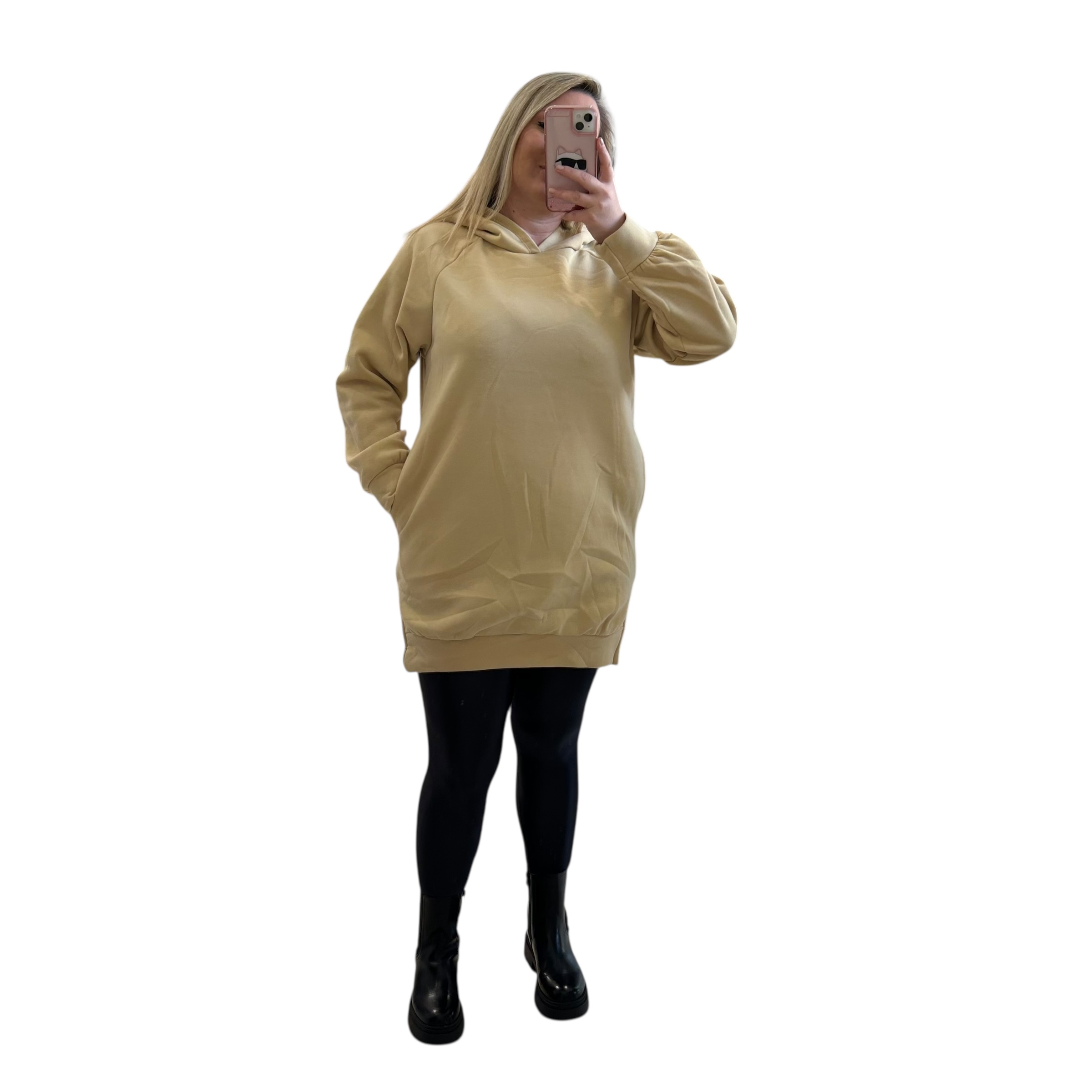 Φούτερ με κουκούλα μπλουζοφόρεμα μπεζ