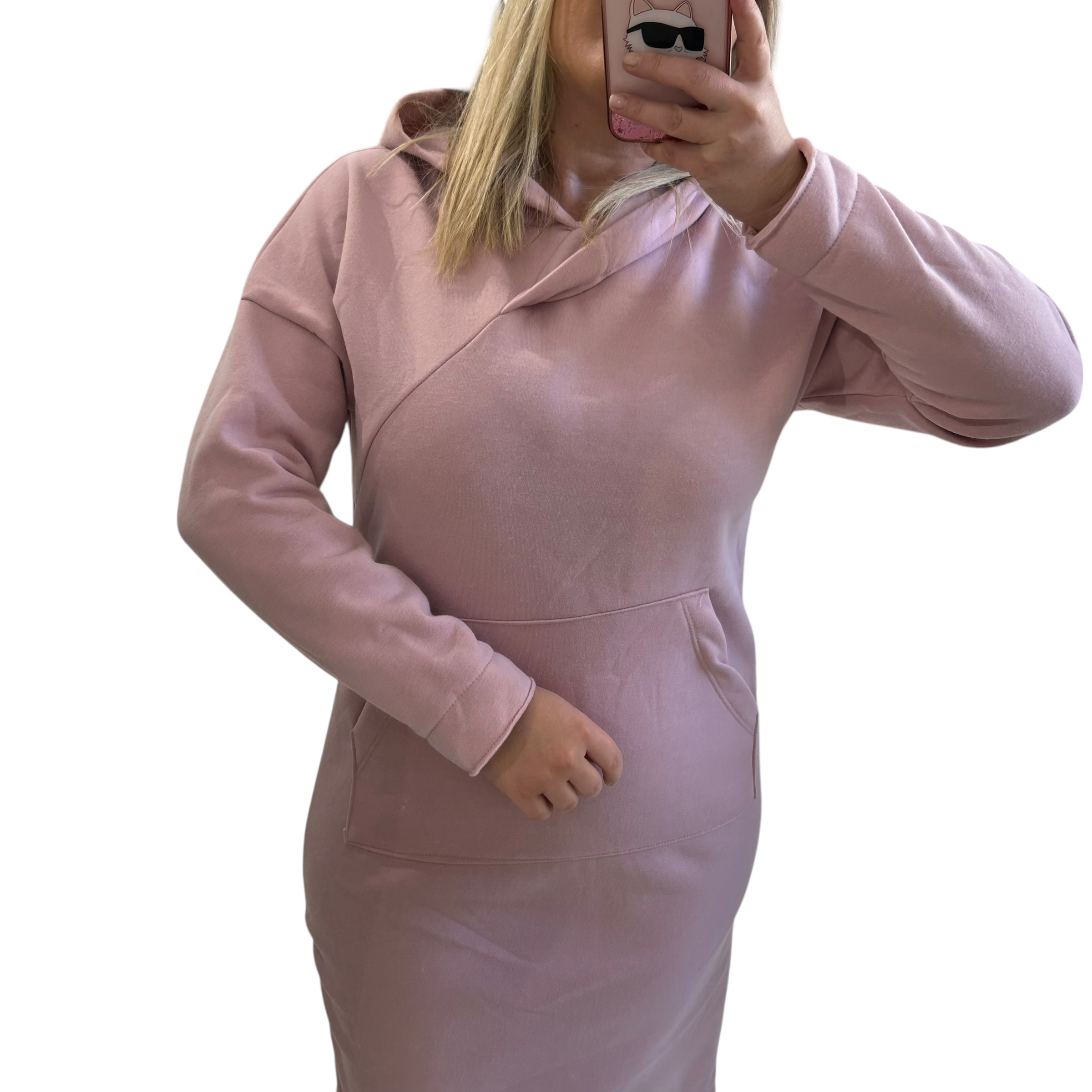 Hoodie με κουκούλα σε ροζ απόχρωση. Μπορεί να συνδυαστεί με αρβυλάκια και με αθλητικά παπούτσια. Διαστάσεις: έως 120 εκ. Σύνθεση: 95% polyester & 5% elastan.