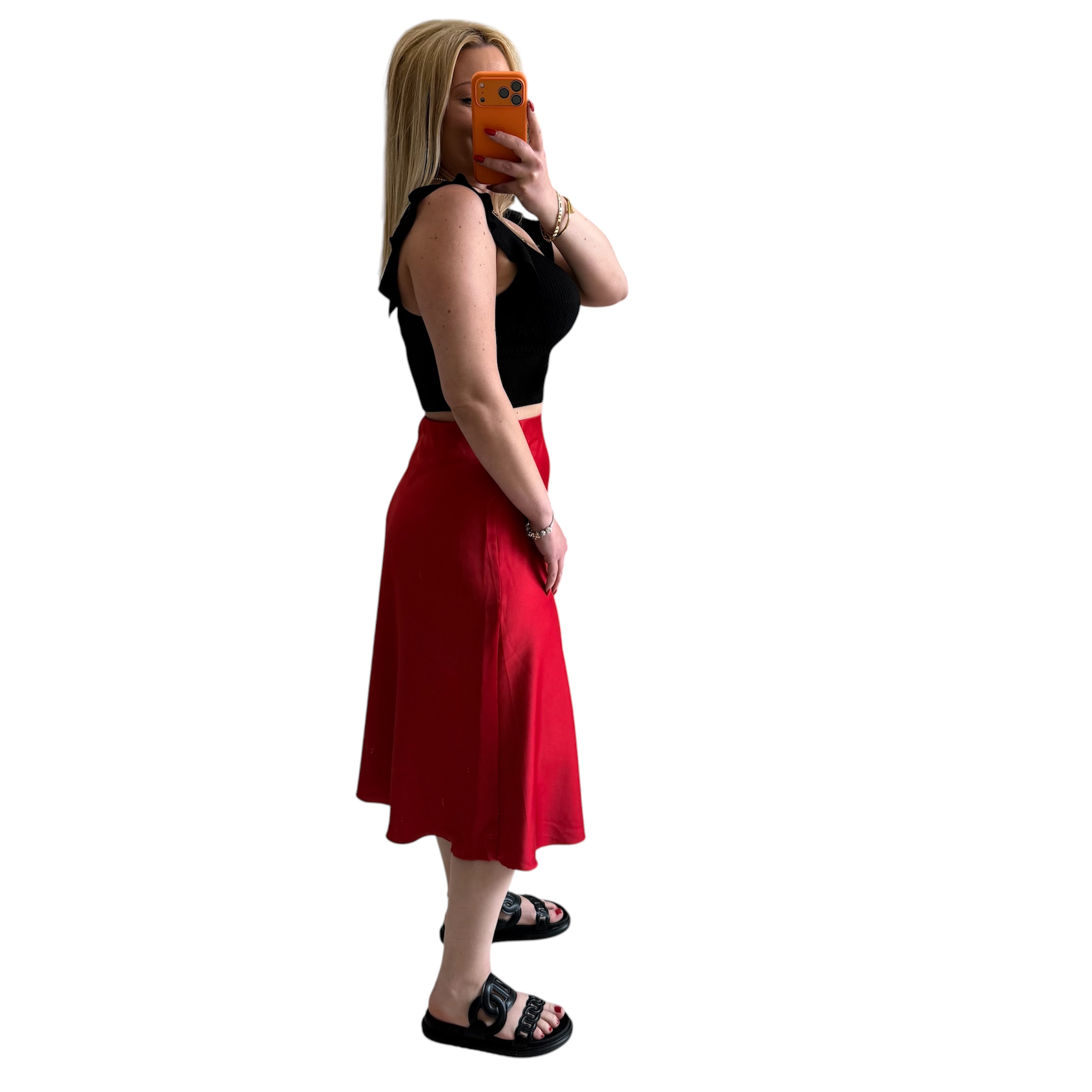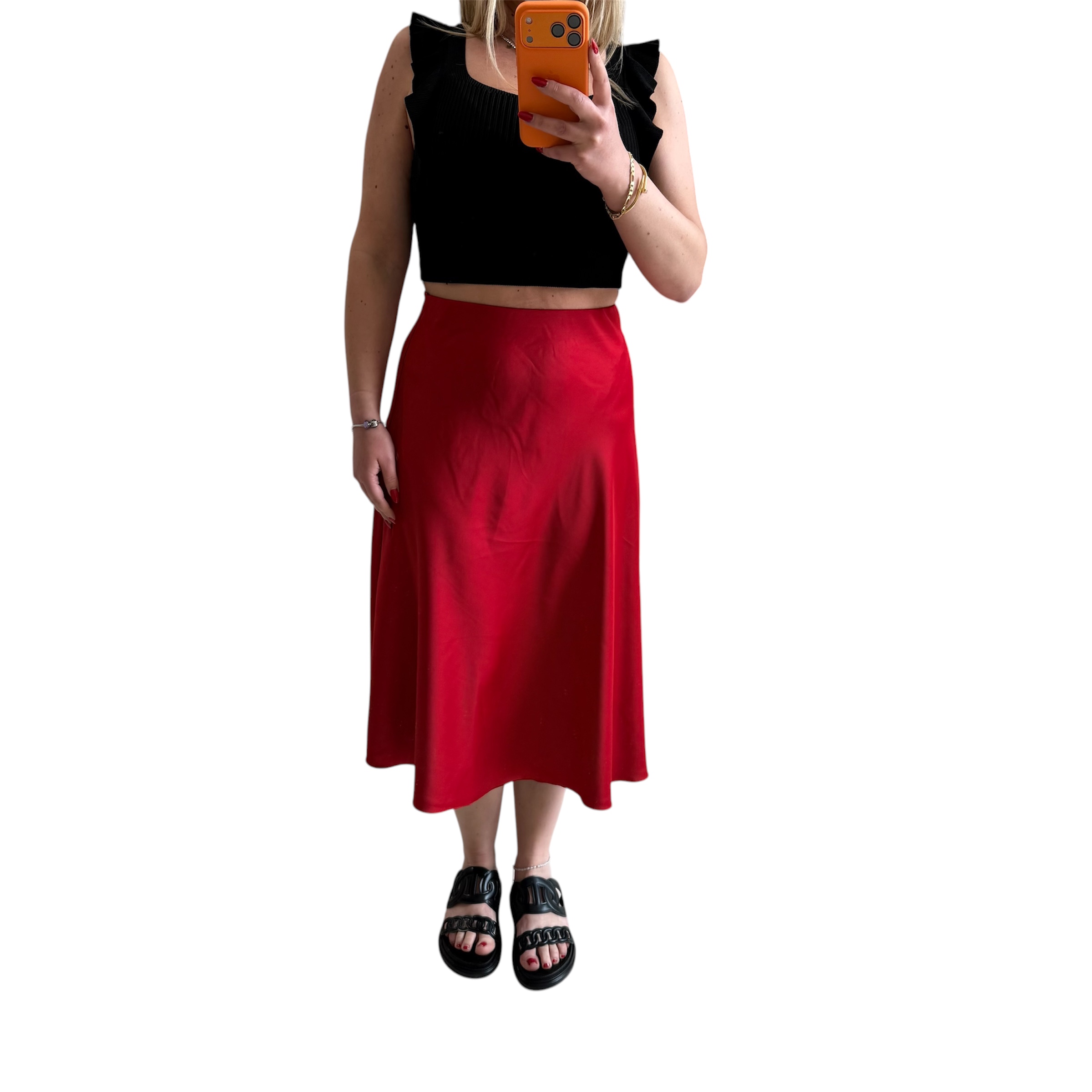 Φούστα μίντι σατέν κόκκινη