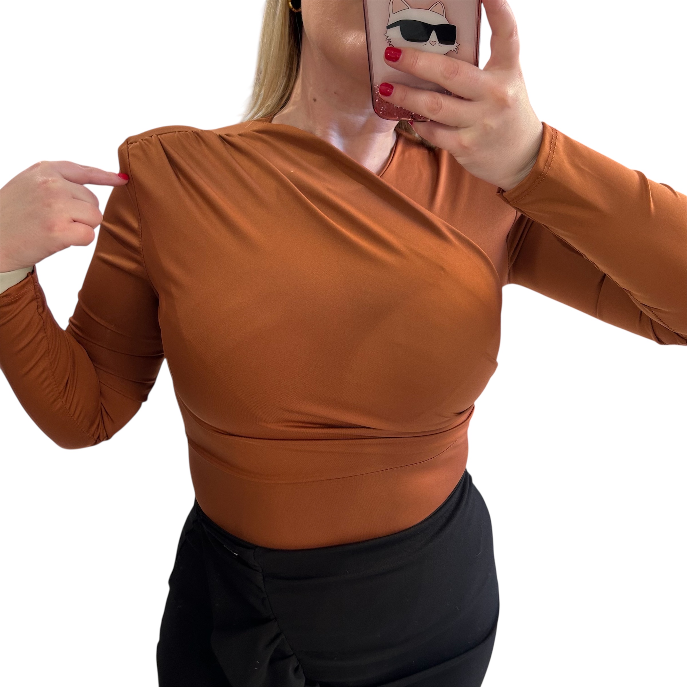 One size κορμάκι καφέ με βάτες. Σύνθεση: 80% polyester & 20% elastan