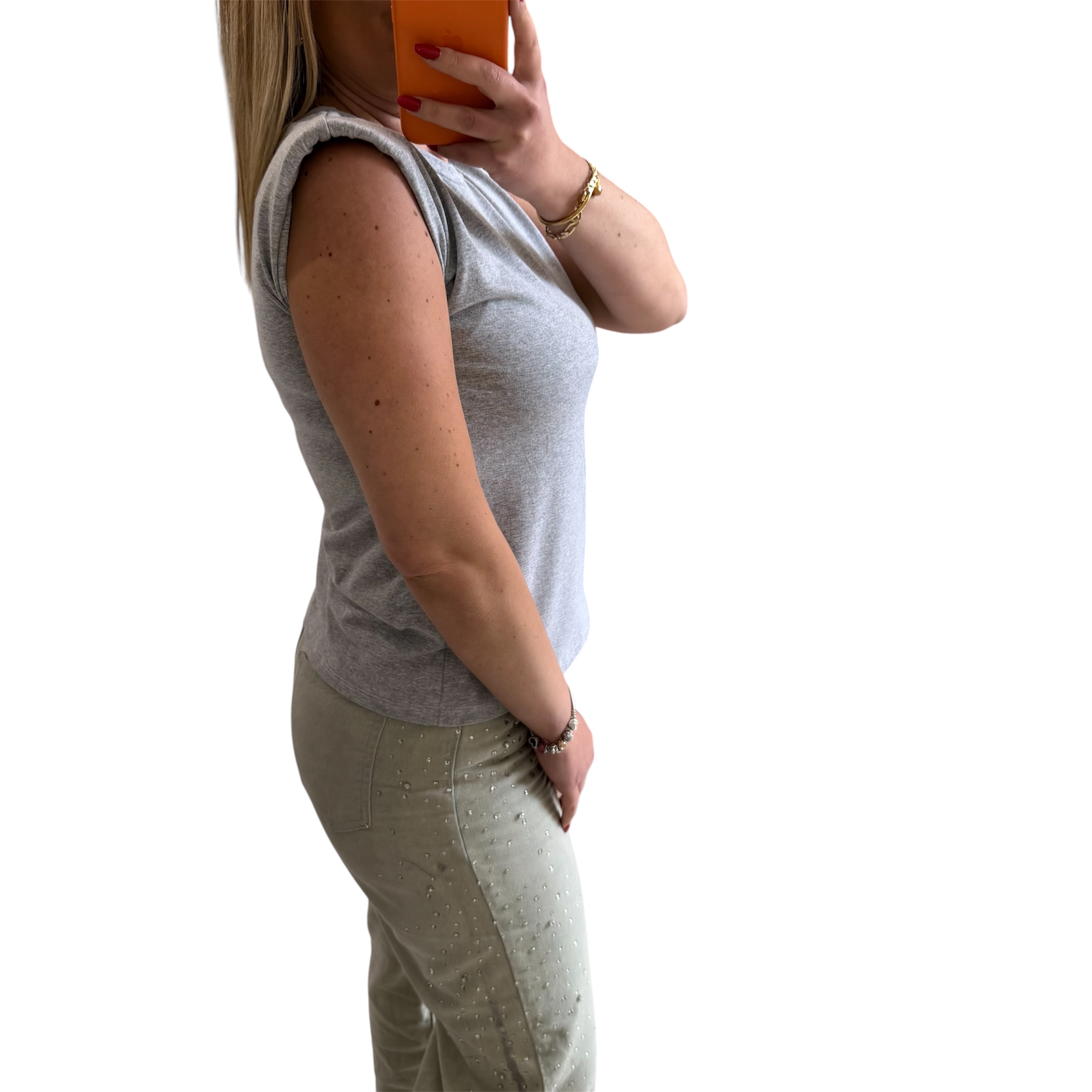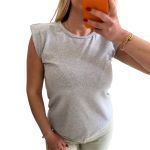 One size αμάνικη μπλούζα γκρι με βάτες στους ώμους. Διαστάσεις: Στήθος: 100 εκ. έως 120 εκ. Σύνθεση:95% cotton, 5% elastan