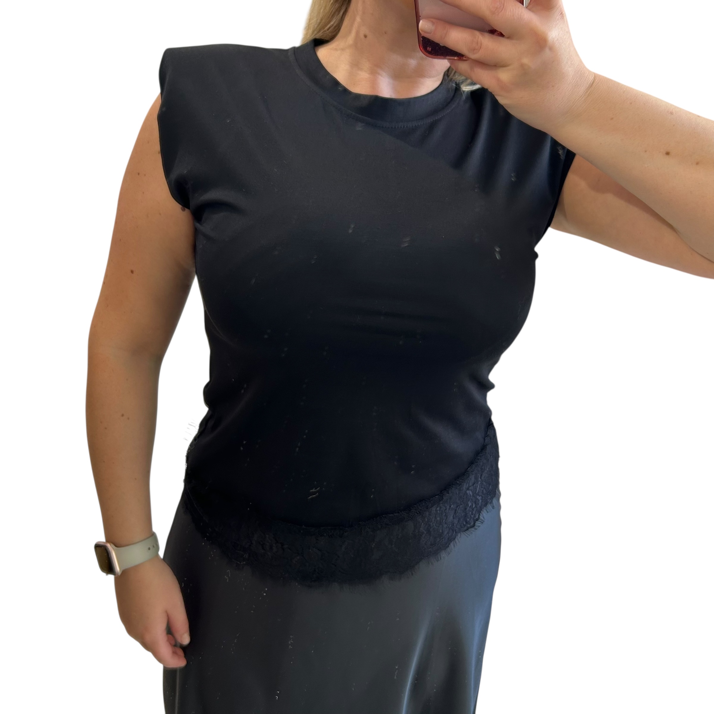 Μπλούζα αμάνικη με δαντέλα μαύρη