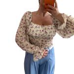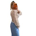 Μπλούζα crop top Μακρυμάνικη με cups φλοραλ εκρού