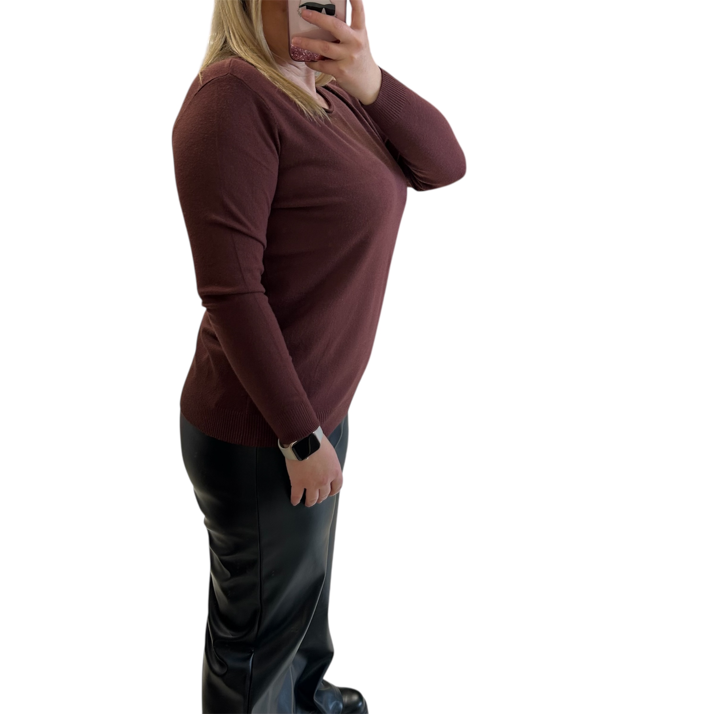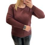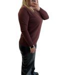 One size Μπλούζα καφέ με βε ντεκολτέ με ελαστικότητα και απαλή υφή υφάσματος. Διαστάσεις: Στήθος:110 εκ. Σύνθεση: 45% viscose, 27% polyester, 23% nylon, 5% modal