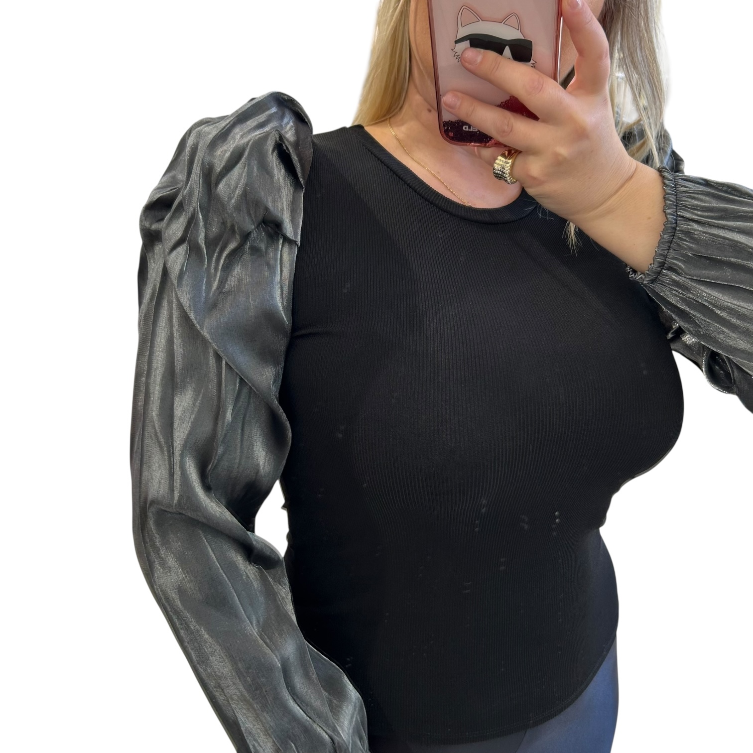Μπλούζα μαύρη με διαφάνεια στα μανίκια