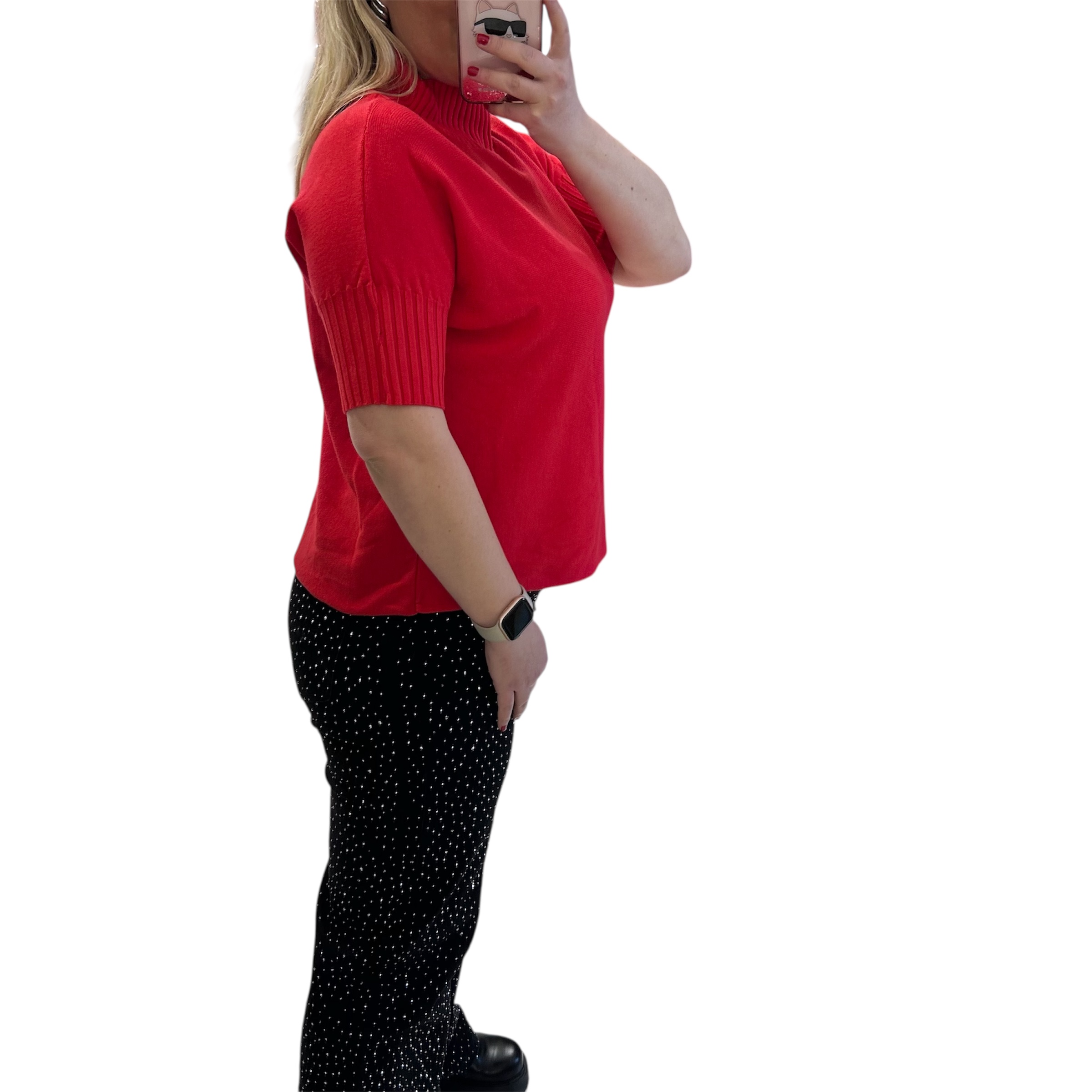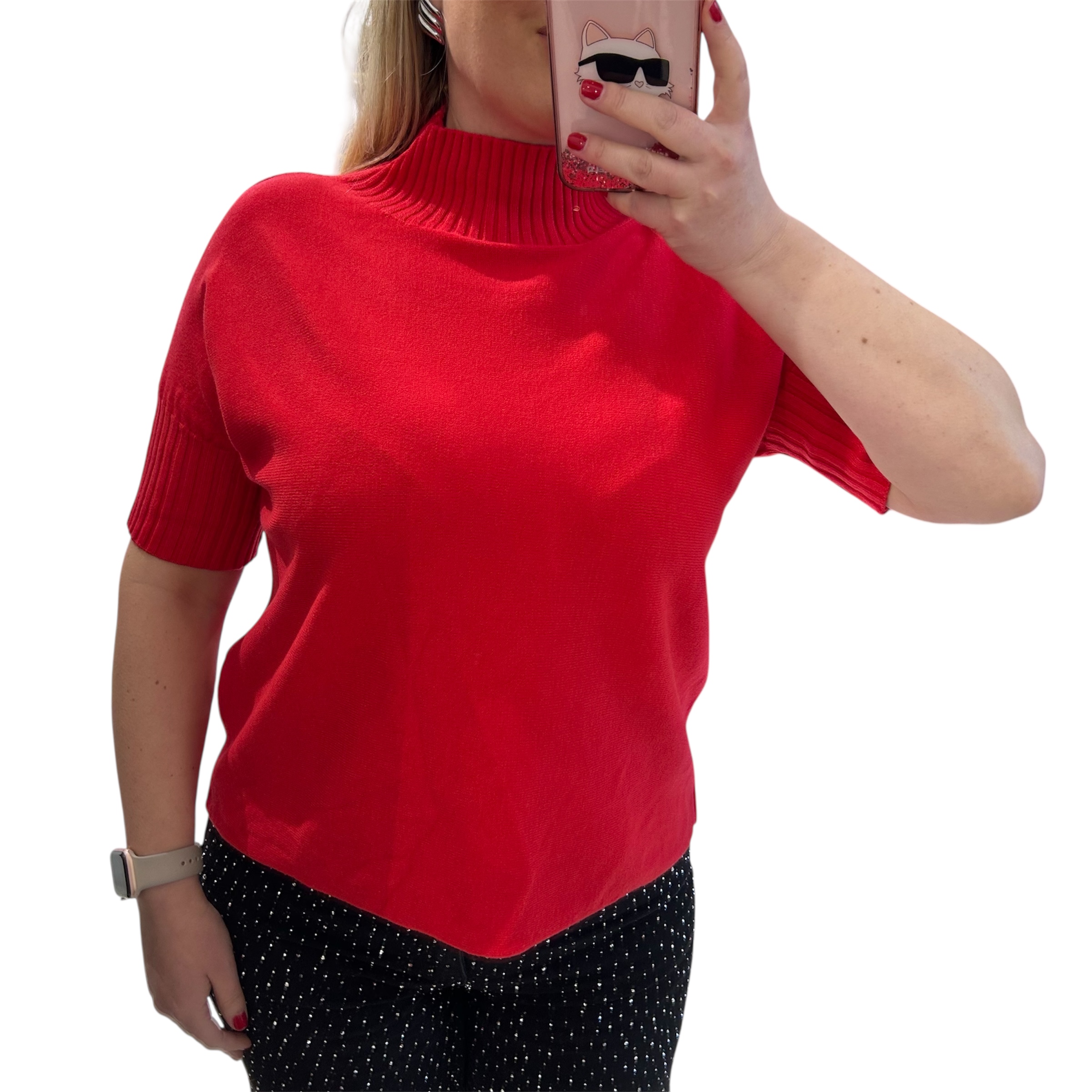 Μπλούζα πλεκτή κοντομάνικη κόκκινη