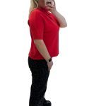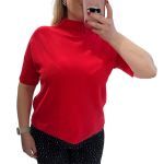 Κόκκινη μπλούζα κοντομάνικη One size λεπτό πλεκτό με χαμηλό λαιμό. Διαστάσεις: Στήθος: 120 εκ έως 130εκ. Σύνθεση: 50% viscose, 28% polyester, 22% polyamide