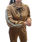 Ολόσωμη φόρμα βελουτέ Μπεζ με ρίγες