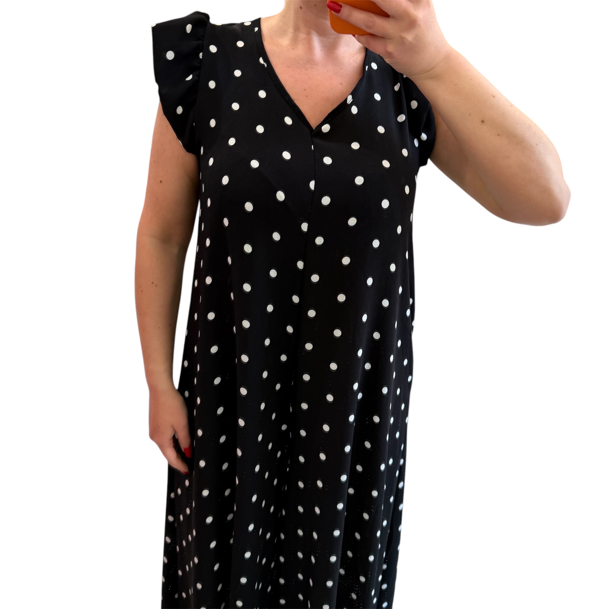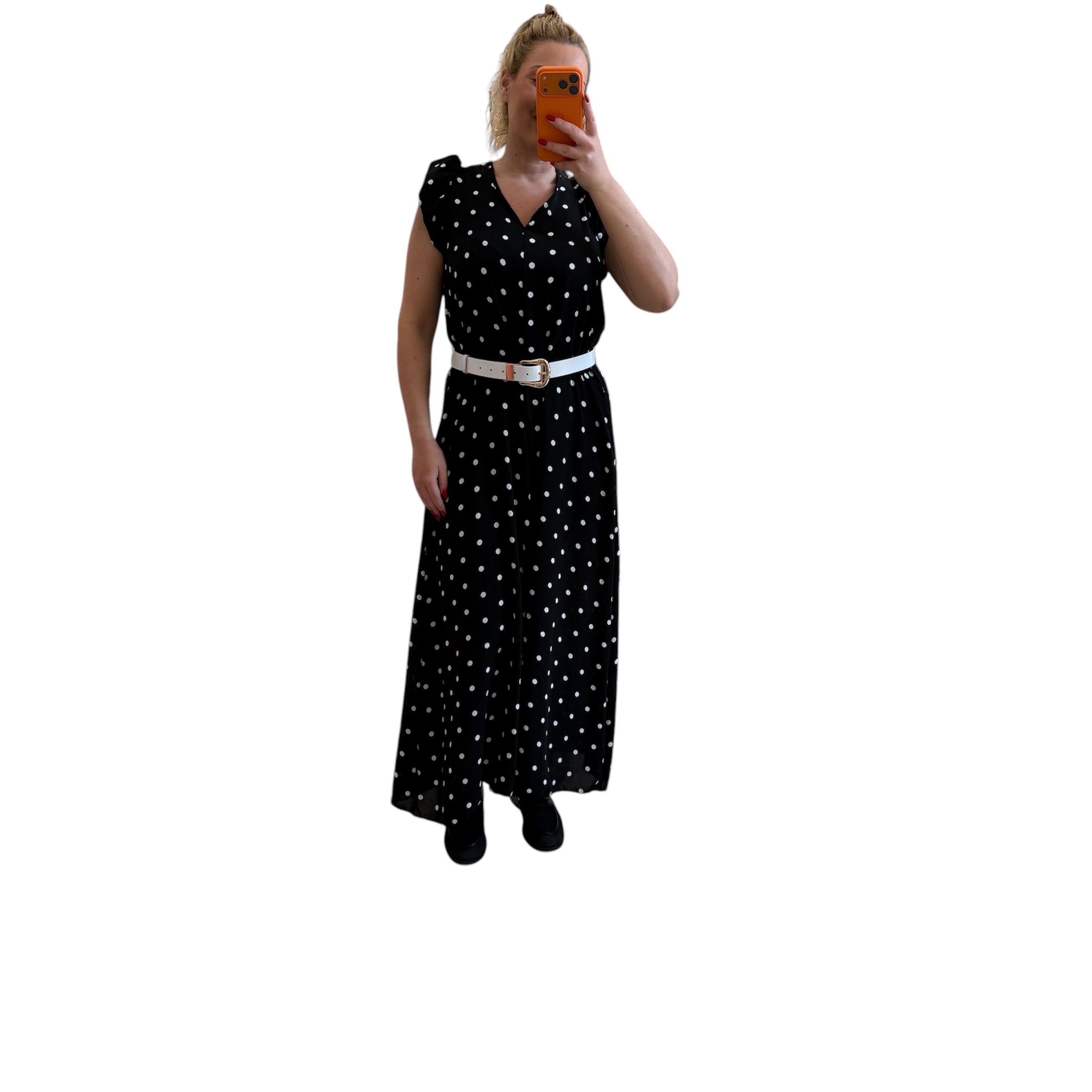 Ολόσωμη φόρμα πουά με βολάν στα μανίκια μαύρη