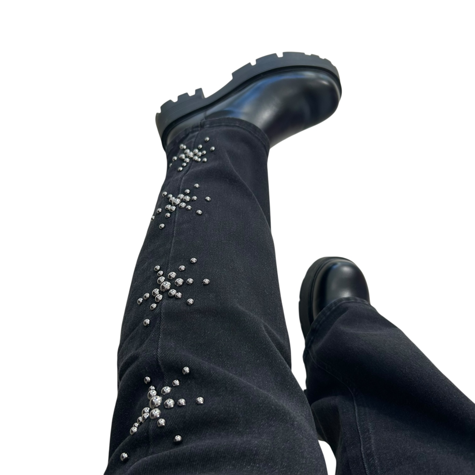 Ψηλόμεσο παντελόνι σε ίσια γραμμή με denim ελαστικό ύφασμα. Τα τρουκς στα πλαινά δίνουν ροκ αισθητική. Κλείνει με κουμπί και φερμουάρ στη μέση για άνετη εφαρμογή. Ιδανικό για εντυπωσιακές εμφανίσεις που συνδυάζουν casual και chic αισθητική. Διαθέτει αρκετή ελαστικότητα αυτό το jean για άνεση. Μπορείς να το φορέσεις με ενα απλό T-shirt ή με ένα κορμάκι για εντυπωσιακή βραδινή εμφάνιση. Σύνθεση:70% cotton,28.5% polyester, 1.5% elastan Xsmall: 34, Small: 36, Medium: 38, Large: 40, Xlarge:42 size