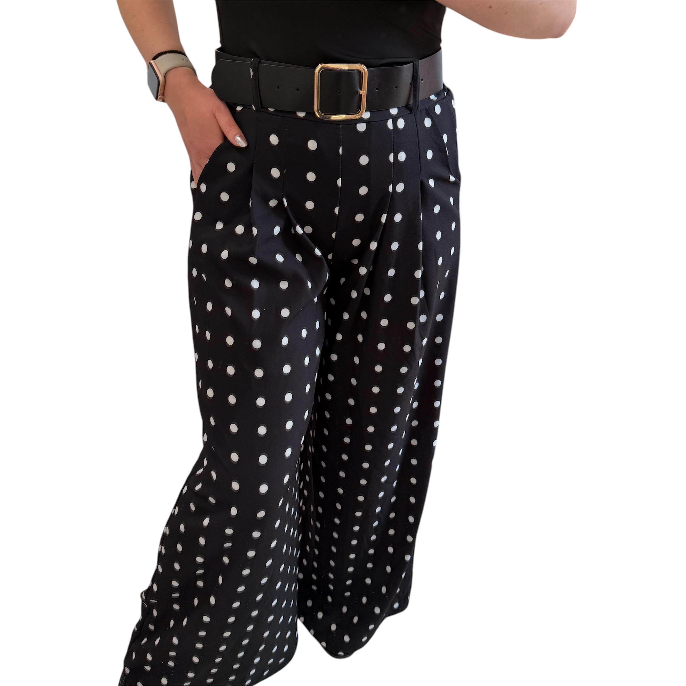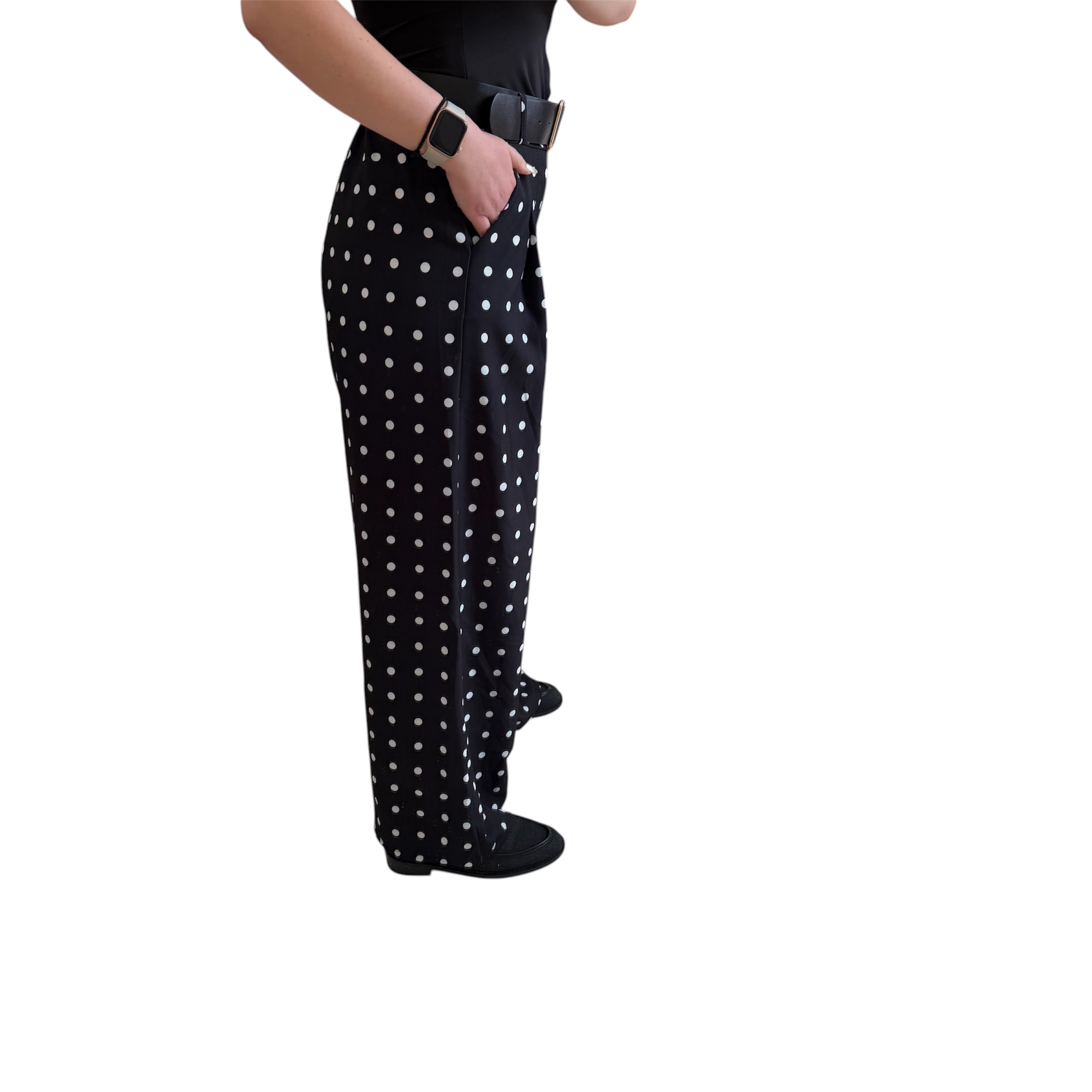 One size παντελόνι μαύρο διαθέτει λάστιχο στο πίσω μέρος της μέσης και τσέπες στα πλαινά. Το παντελόνι διαθέτει δική του ζώνη σε μαύρο χρώμα με χρυσή αγκράφα. Μακρύ παντελόνι. Διαστάσεις: Μέση: 70 εκ έως 100 εκ. Περιφέρεια: έως 115 εκ. Ύψος: 115 εκ. Σύνθεση: 50% viscose, 45% polyester, 5% elastan