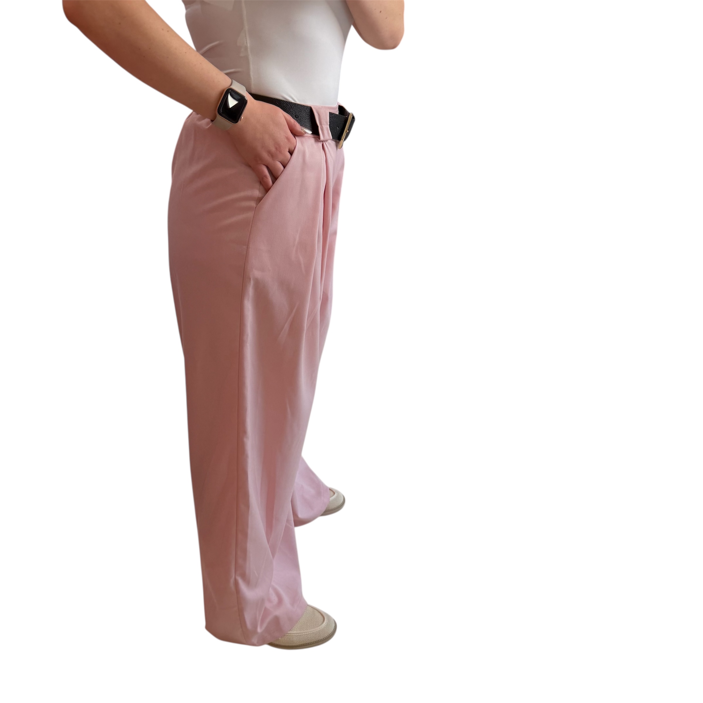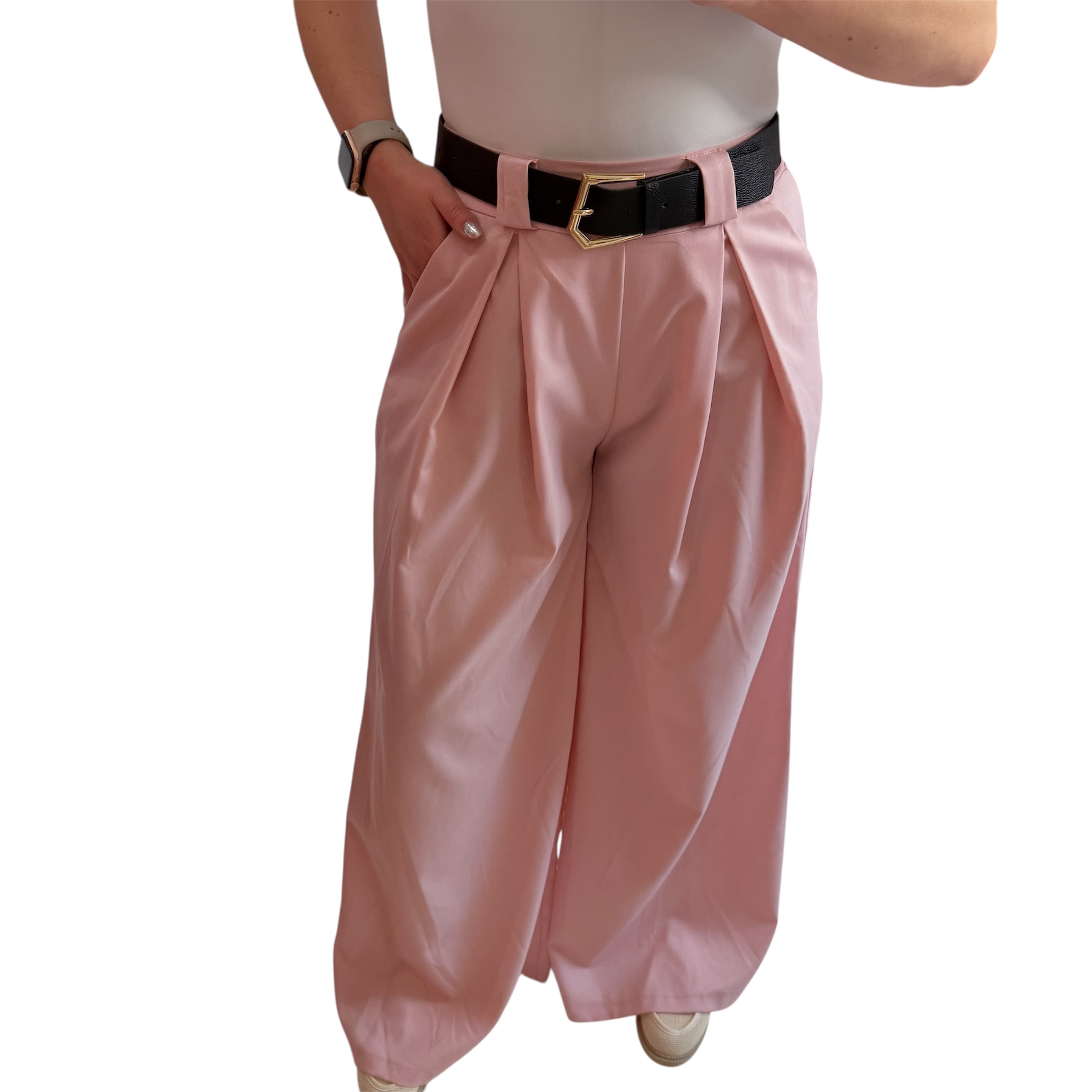 Παντελόνι ροζ με χρυσή ζώνη