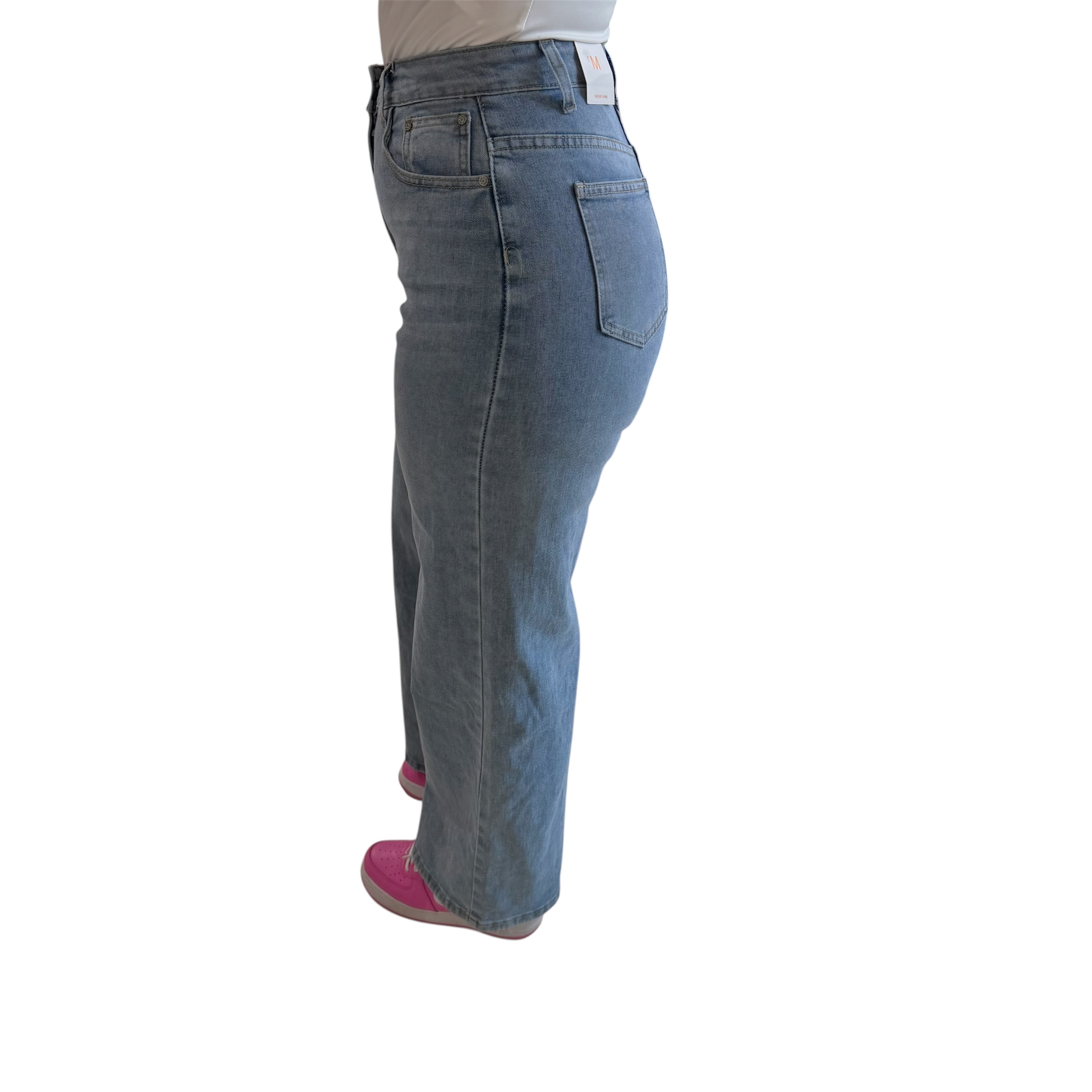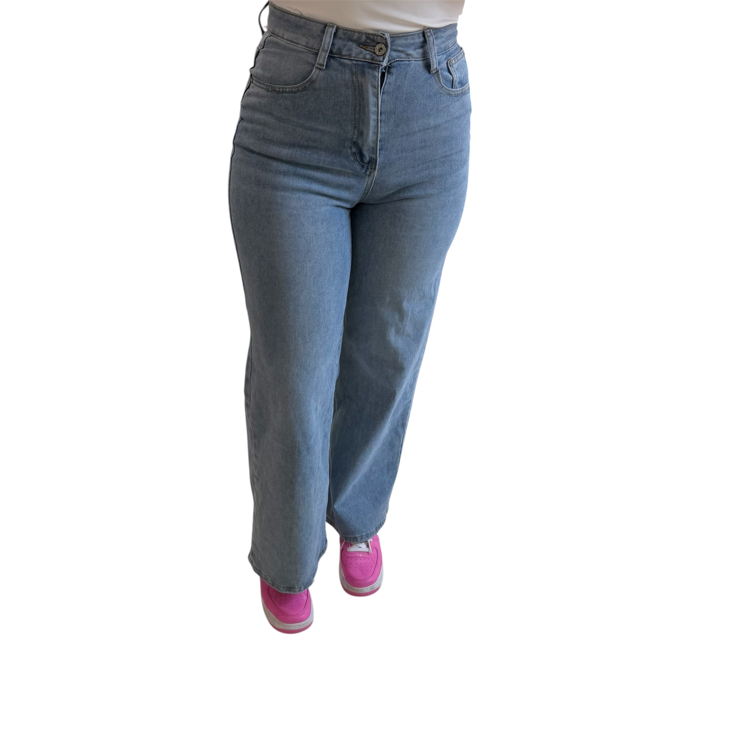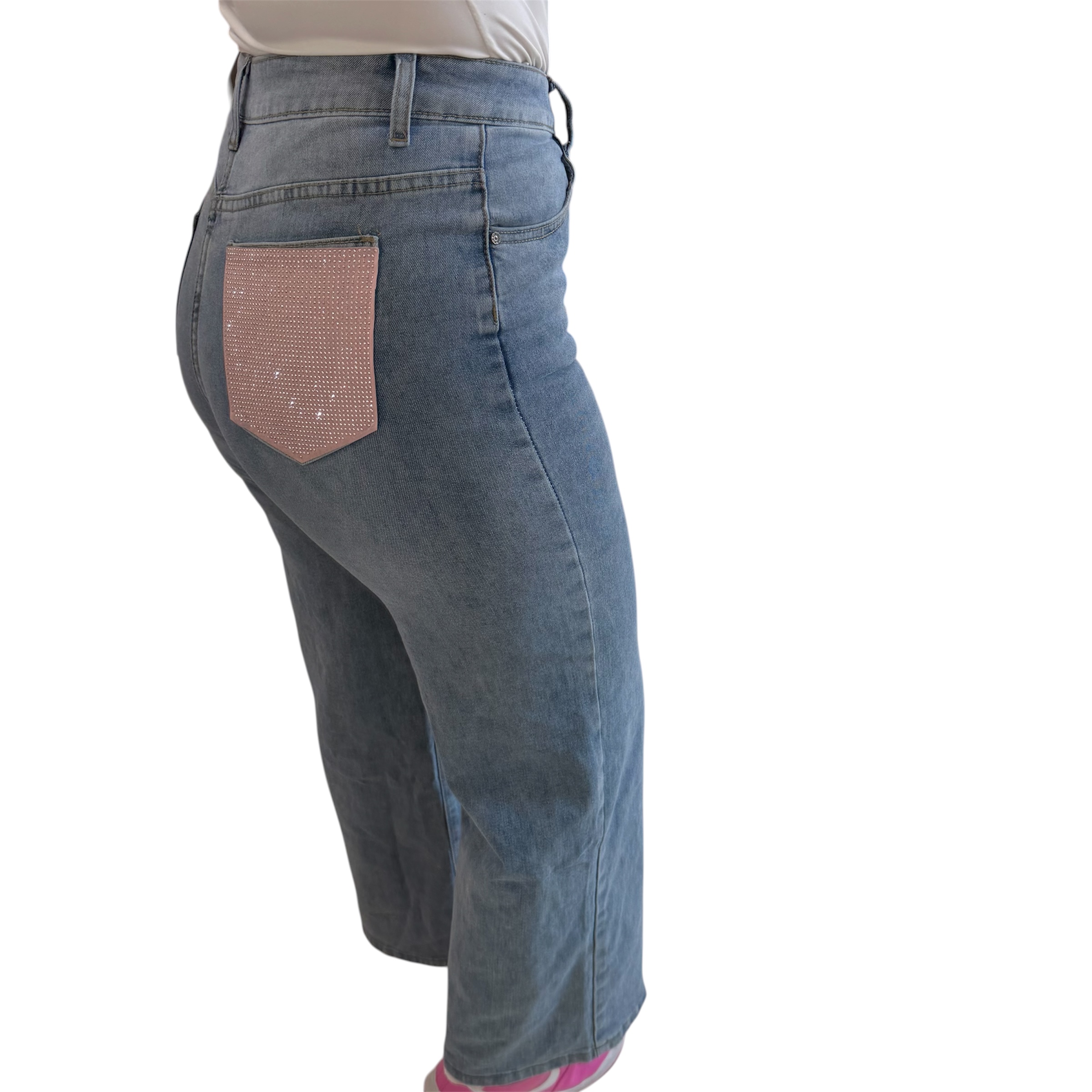 Τζιν μπλε ψηλόμεσο με στρας ροζ στην τσέπη