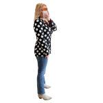 Σακάκι πουά ασπρόμαυρο με βάτες, κλειστές τσέπες και 2 μαύρα κουμπιά που κλείνει στο μπροστινό μέρος. Διαθέτει εσωτερική φόδρα σε μαύρο χρώμα. Polka dots blazer. Διαστάσεις: Στήθος:έως 105 εκ. Μέση: έως 100 εκ. Σύνθεση: 95% polyester, 5% elastan