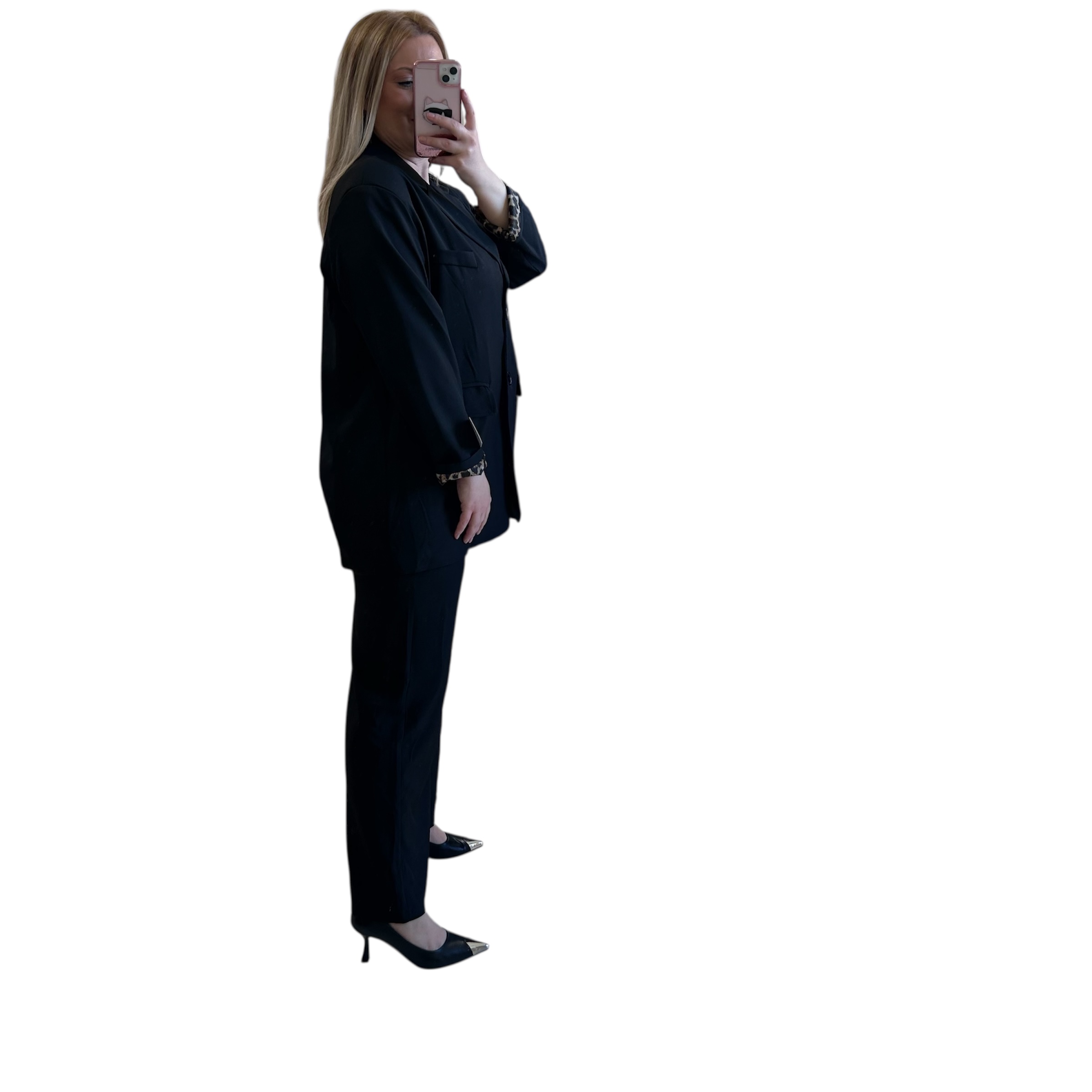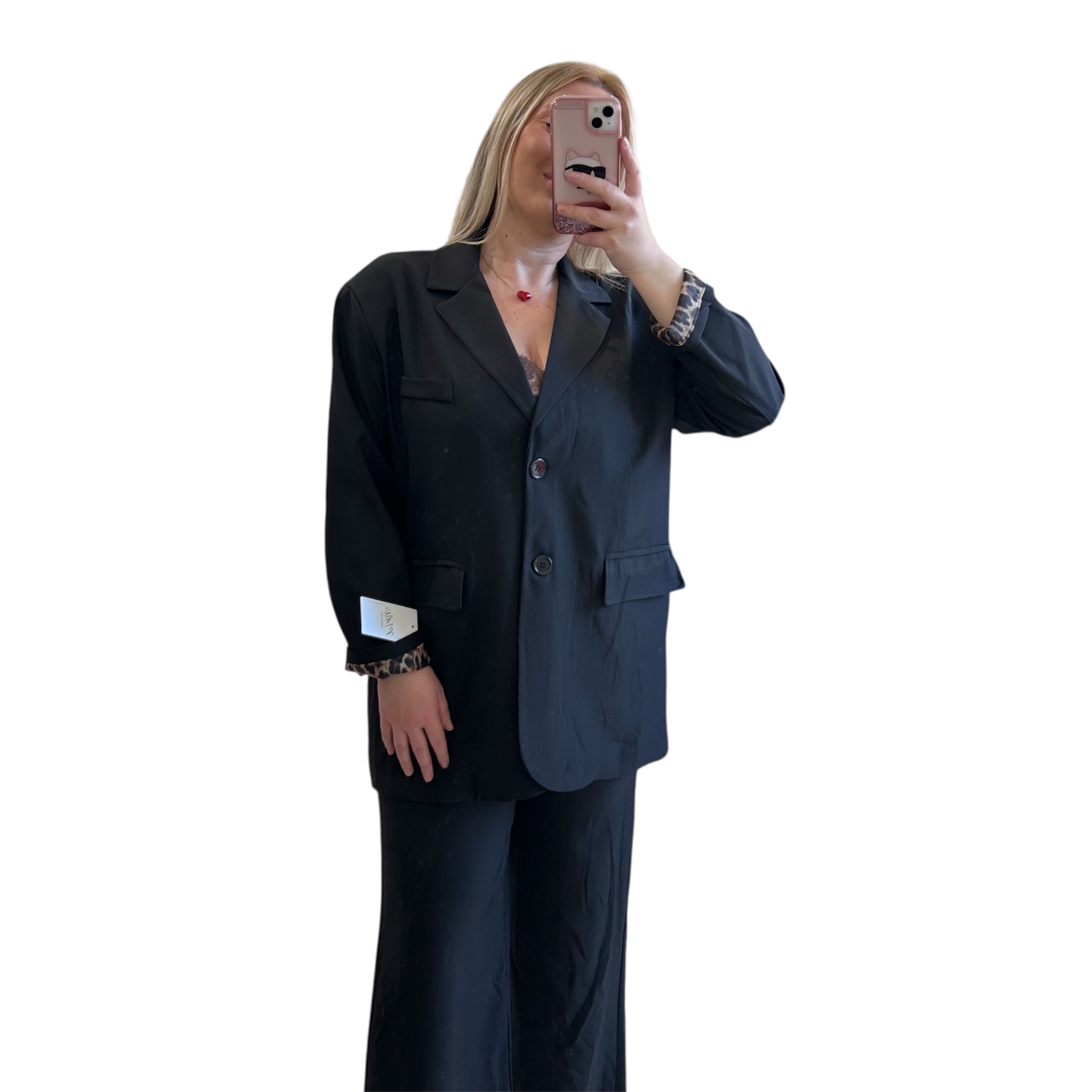 Κοστούμι μαύρο με λεοπάρ φόδρα
