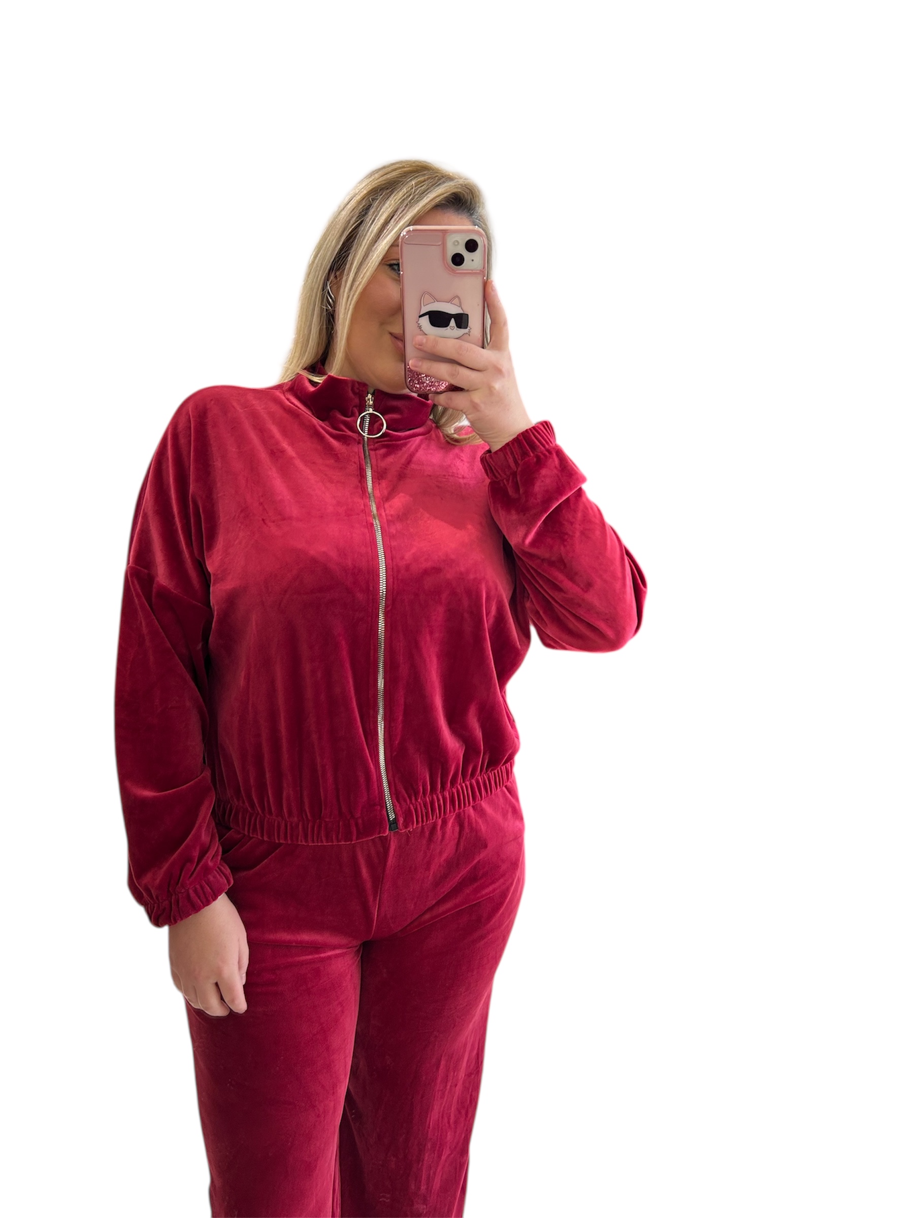 Σετ βελουτέ φόρμα με ζακέτα μπορντό