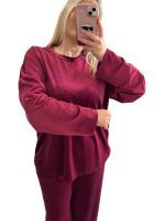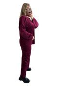 One size βελουτέ φόρμα σε μπορντό απόχρωση. Το παντελόνι είναι ψηλόμεσο και διαθέτει λάστιχο στη μέση. Διαστάσεις: Στήθος: 134εκ., Μέση:120 εκ. Ύψος παντελονιού: 102 εκ. Σύνθεση: 60% viscose, 35% polyester, 5% elastan