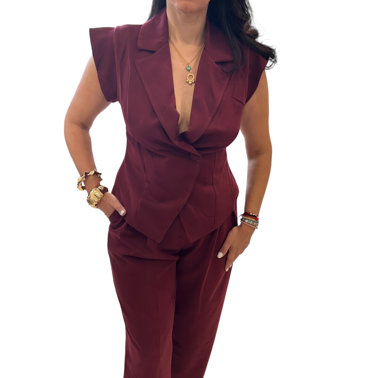 Σετ κοστούμι με παντελόνι και γιλέκο μπορντό