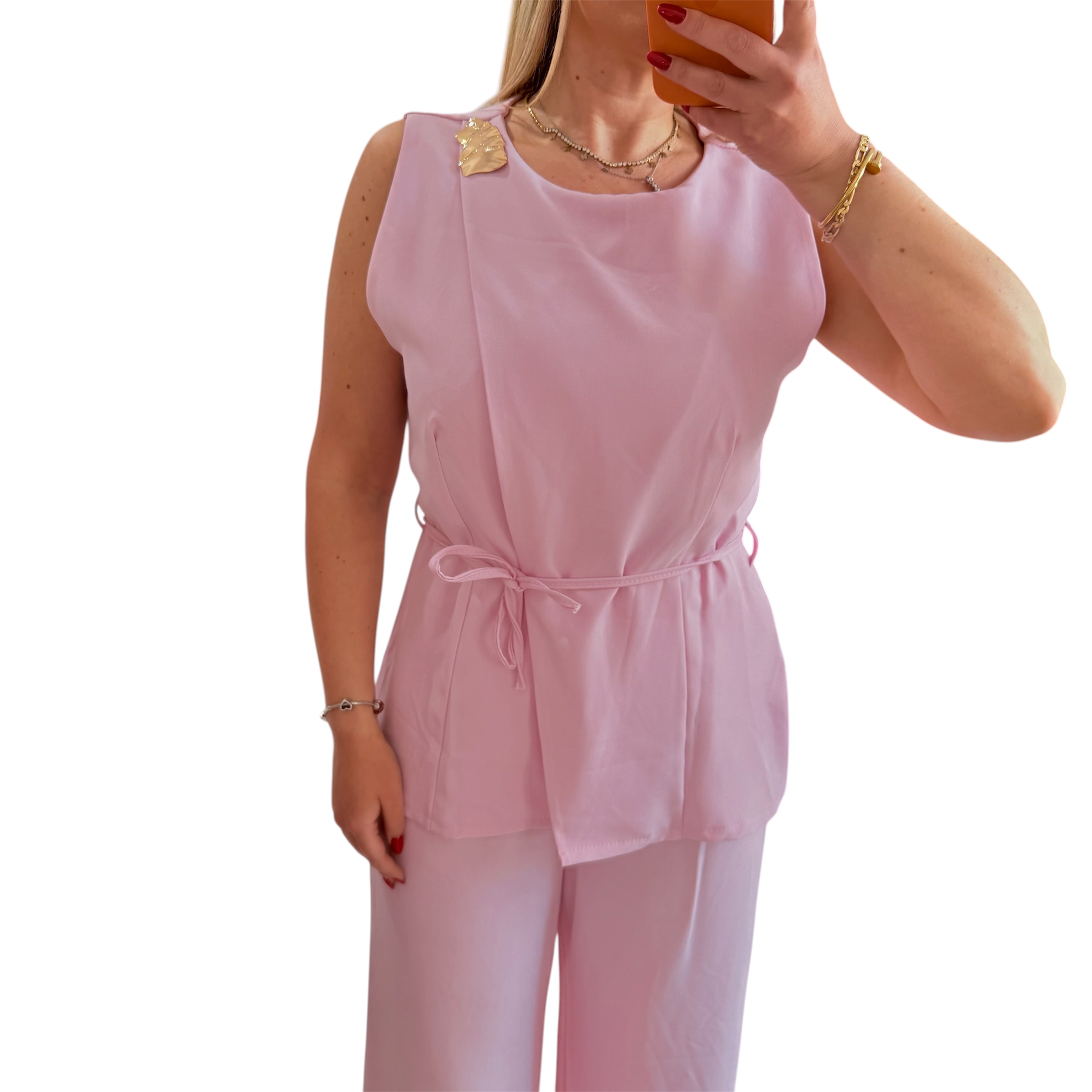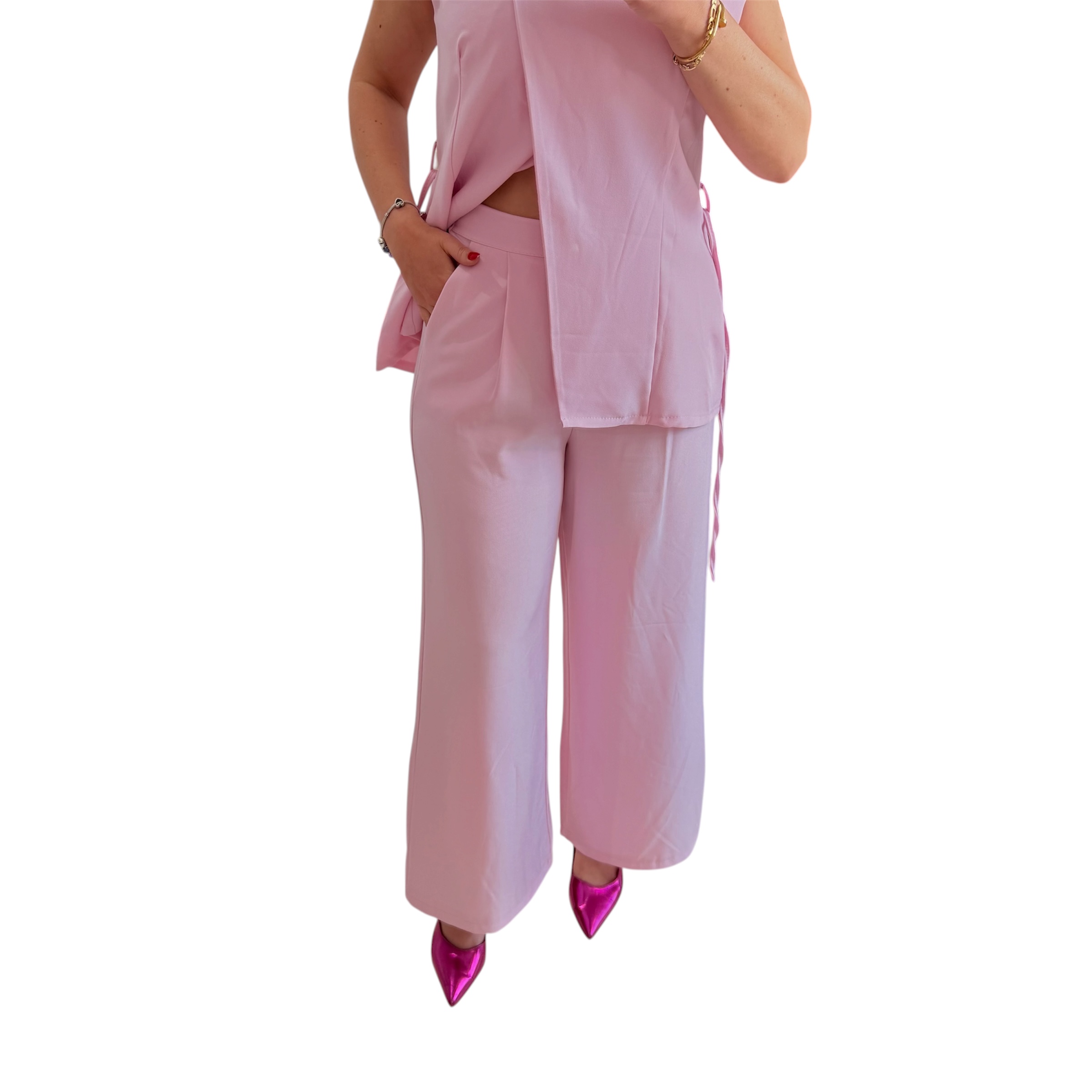 Σετ κοστούμι ροζ με μπλούζα αμάνικη και παντελόνι