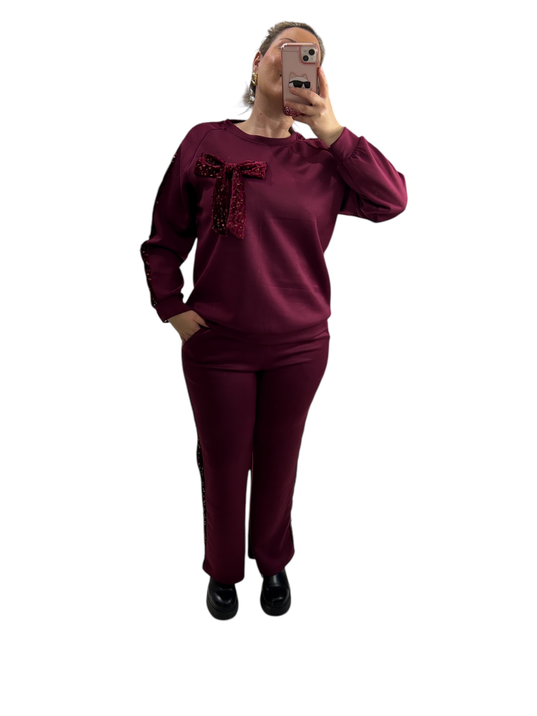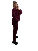Σετ παντελόνι με μπλούζα μπορντό με βελούδινο φιόγκο και πούλιες