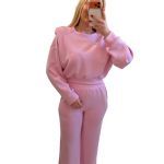 Σετ τοπ με βάτες και παντελόνι ροζ