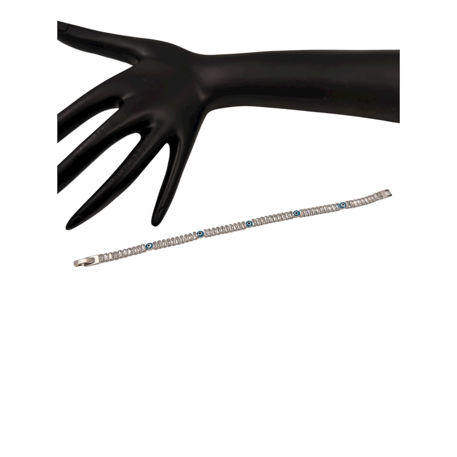 Βραχιόλι ατσάλινο ασημί με ματάκια και στρας
