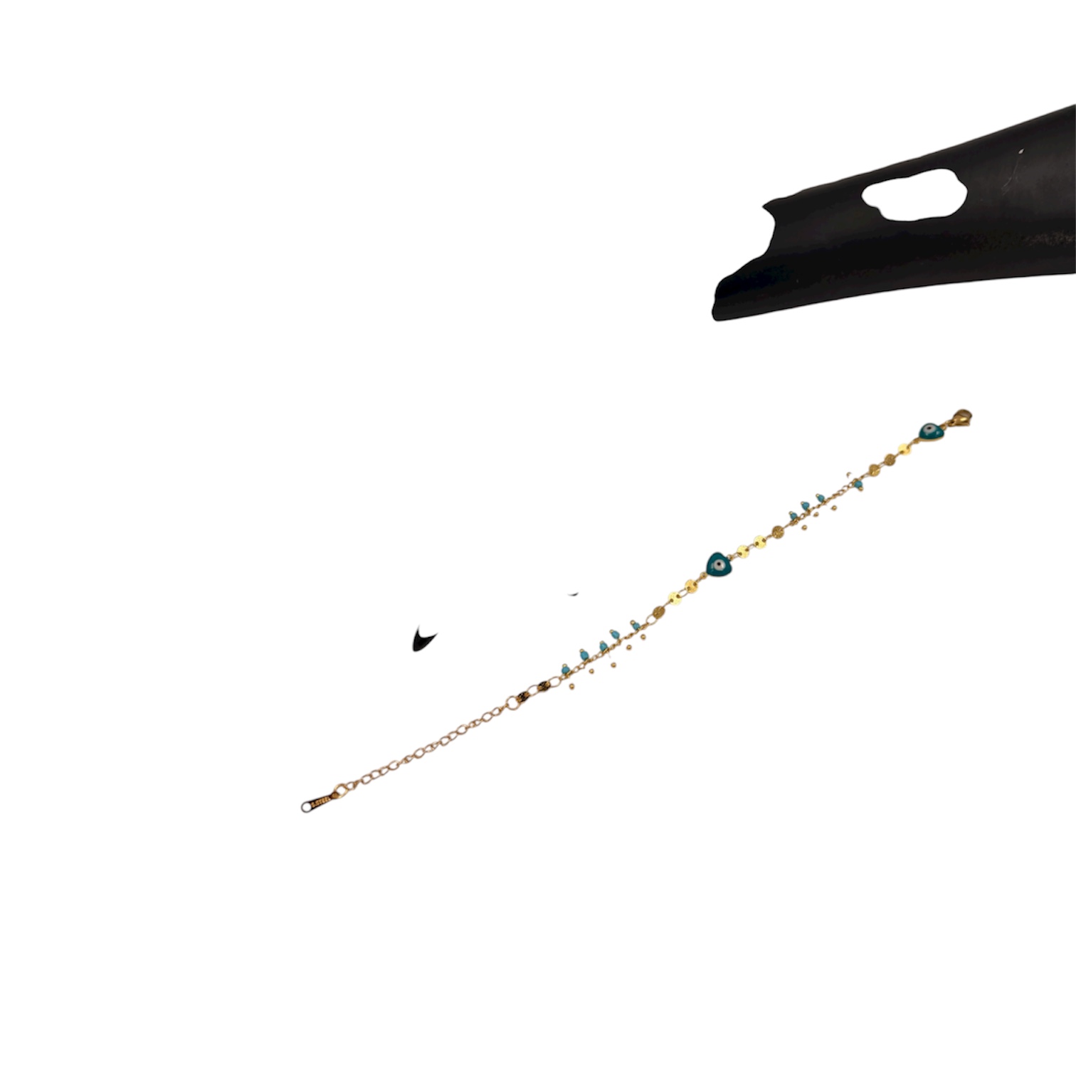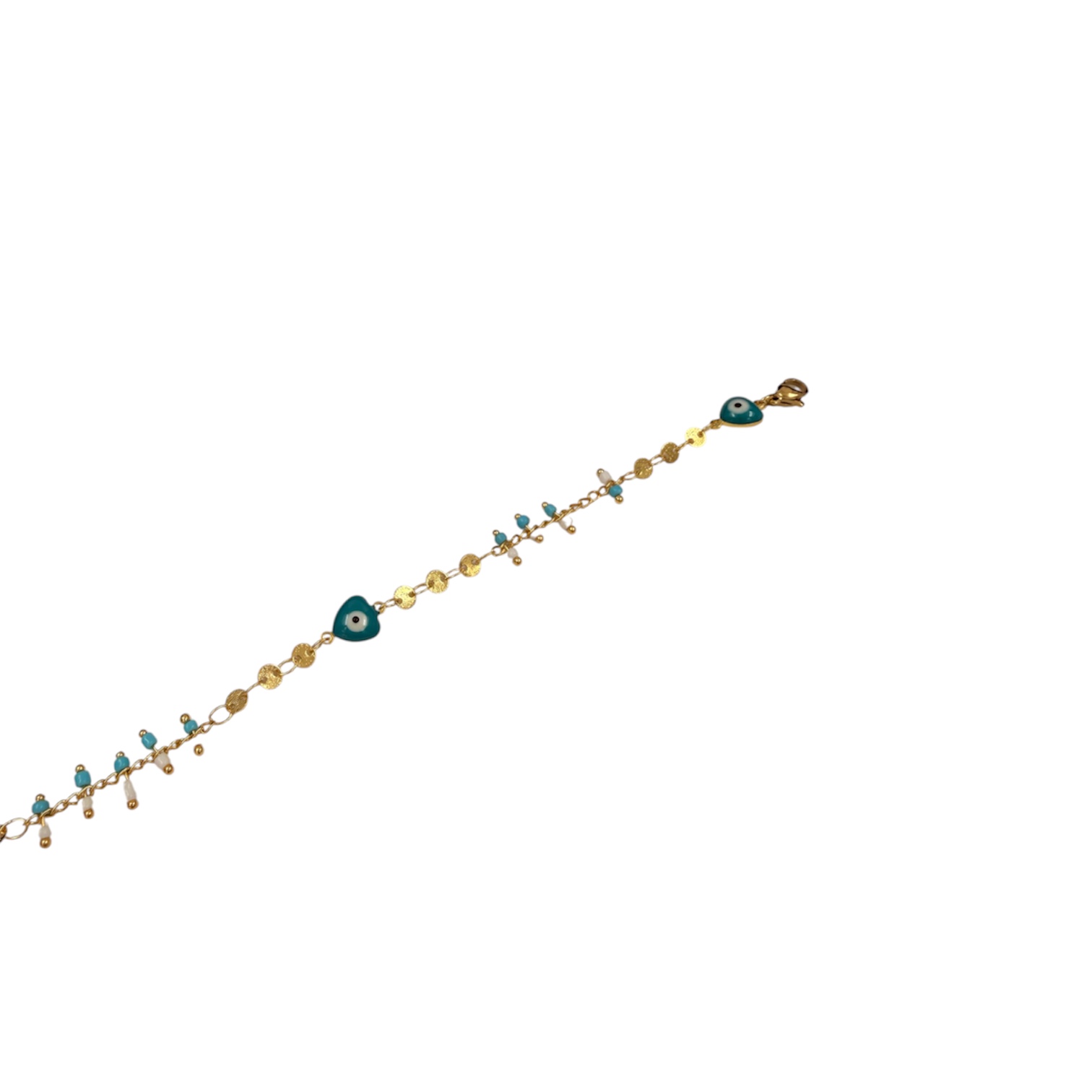 Βραχιόλι ατσάλινο χρυσό με χάντρες τιρκουάζ και ματάκια