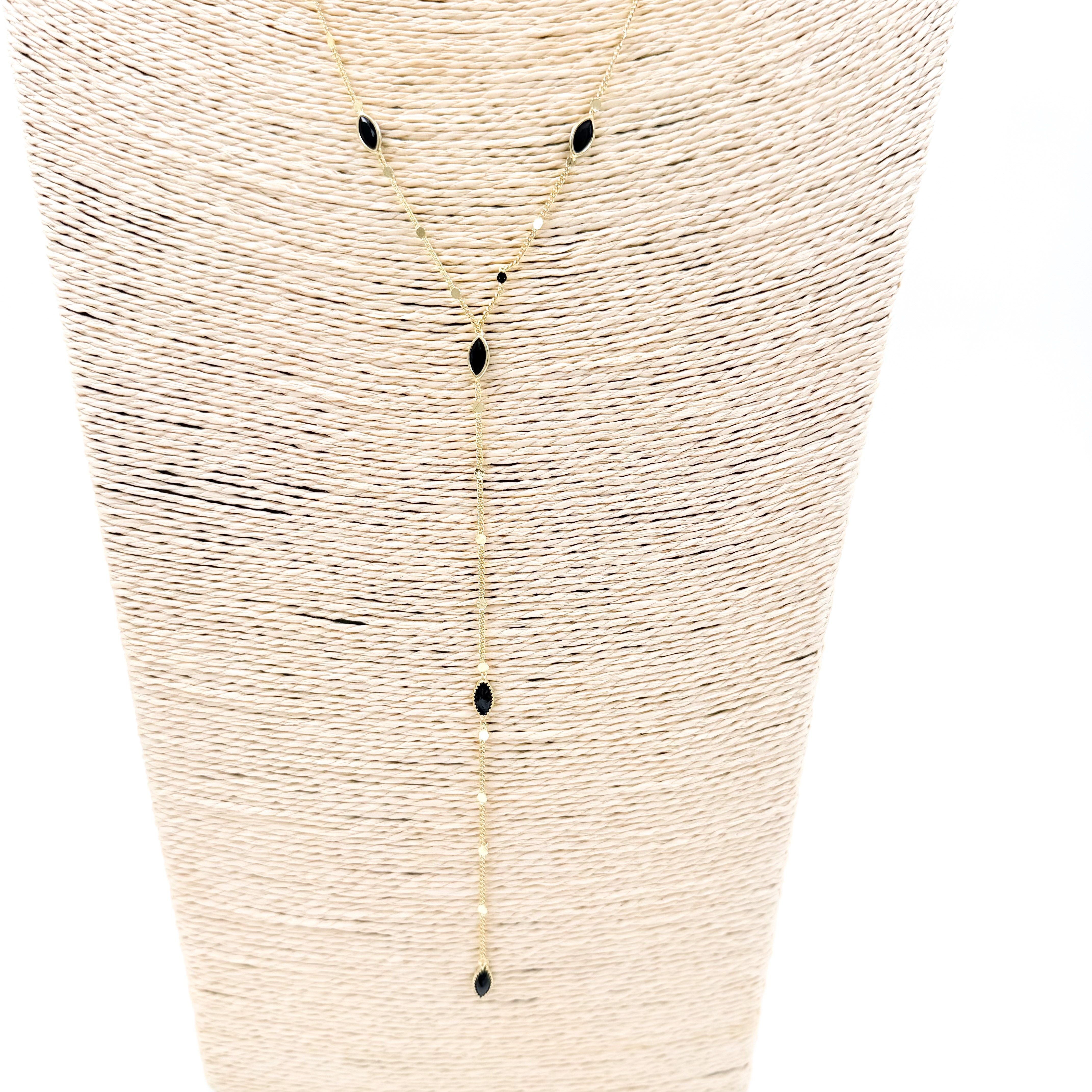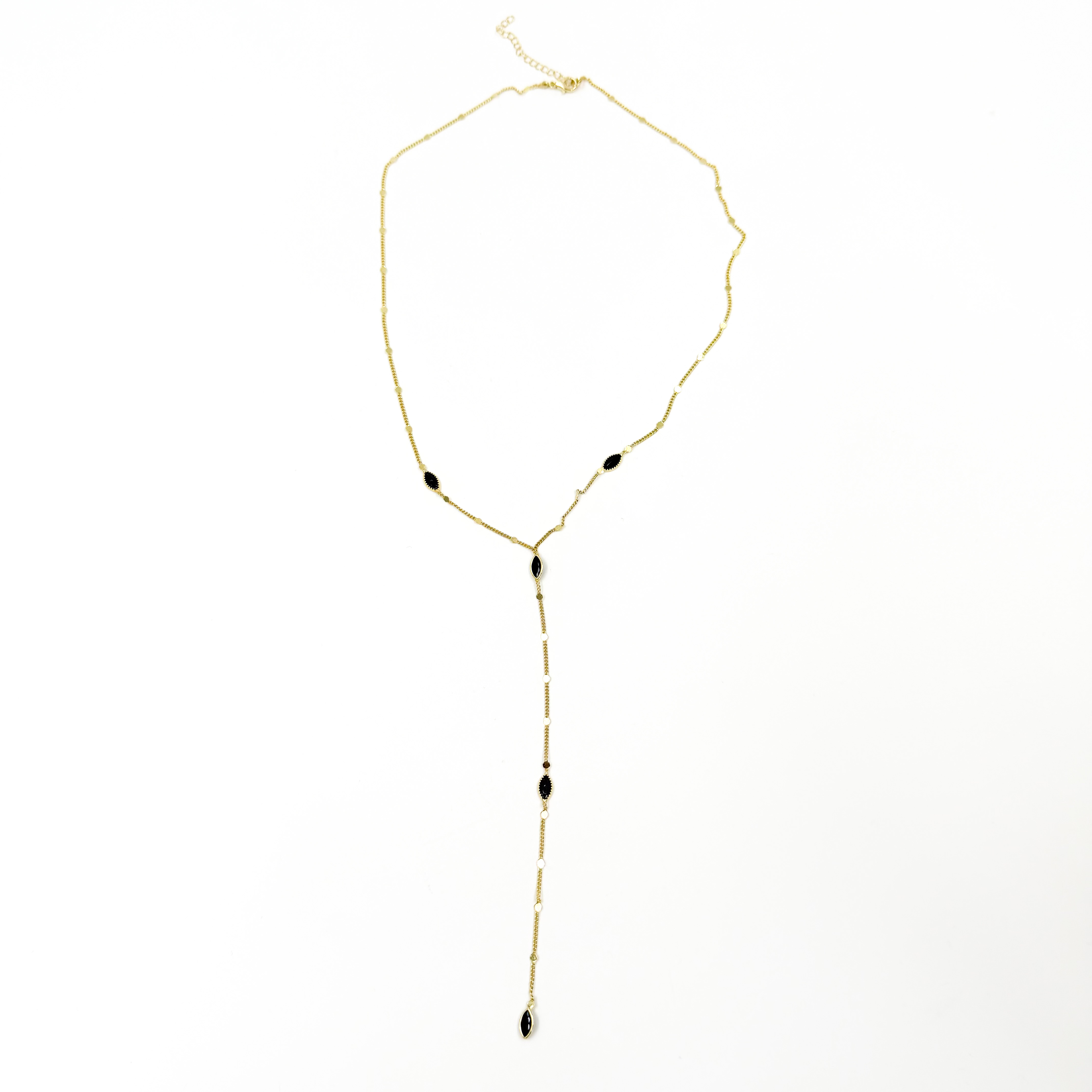 Κολιέ ατσάλινο αλυσίδα λεπτή σε σχήμα Y με μαύρες πέτρες