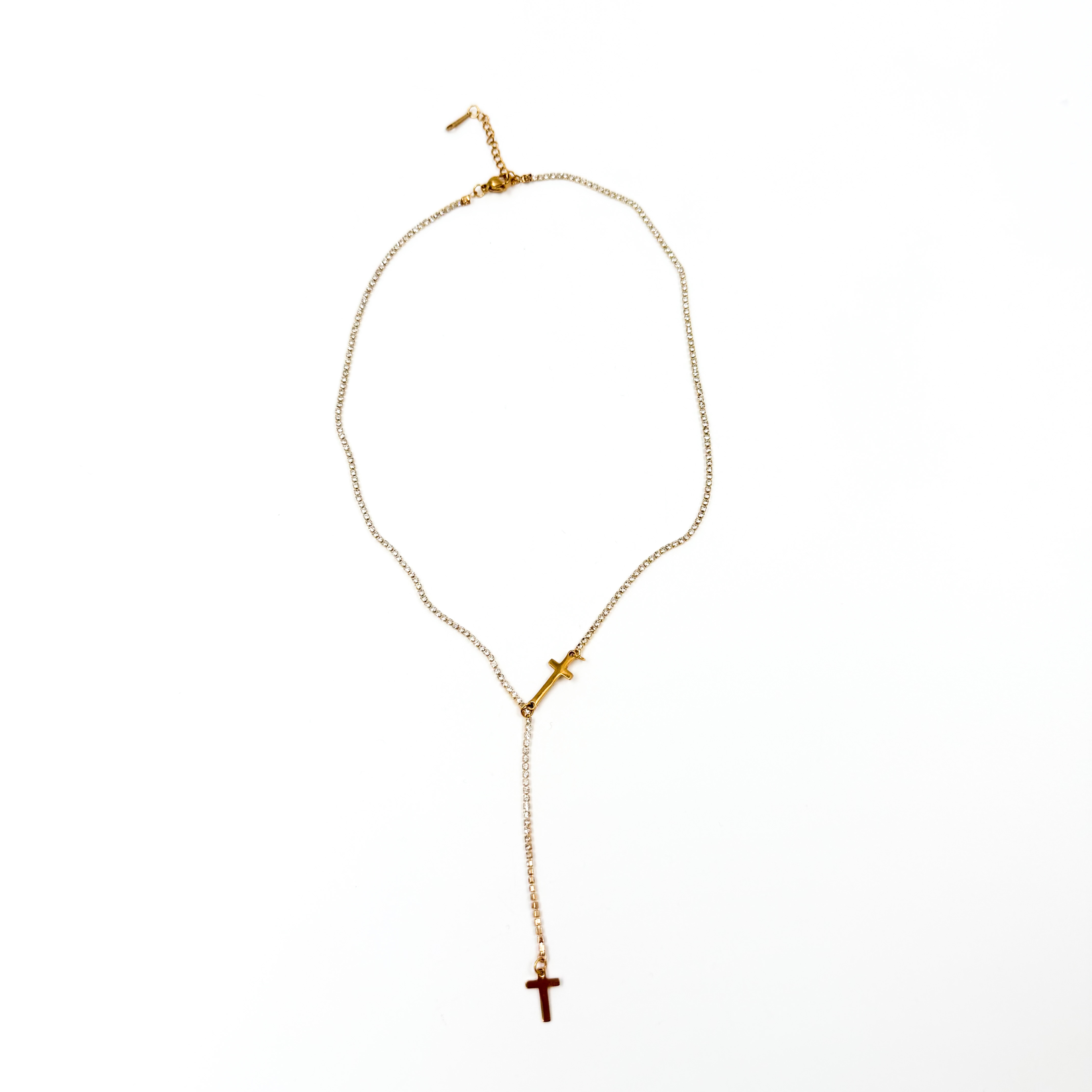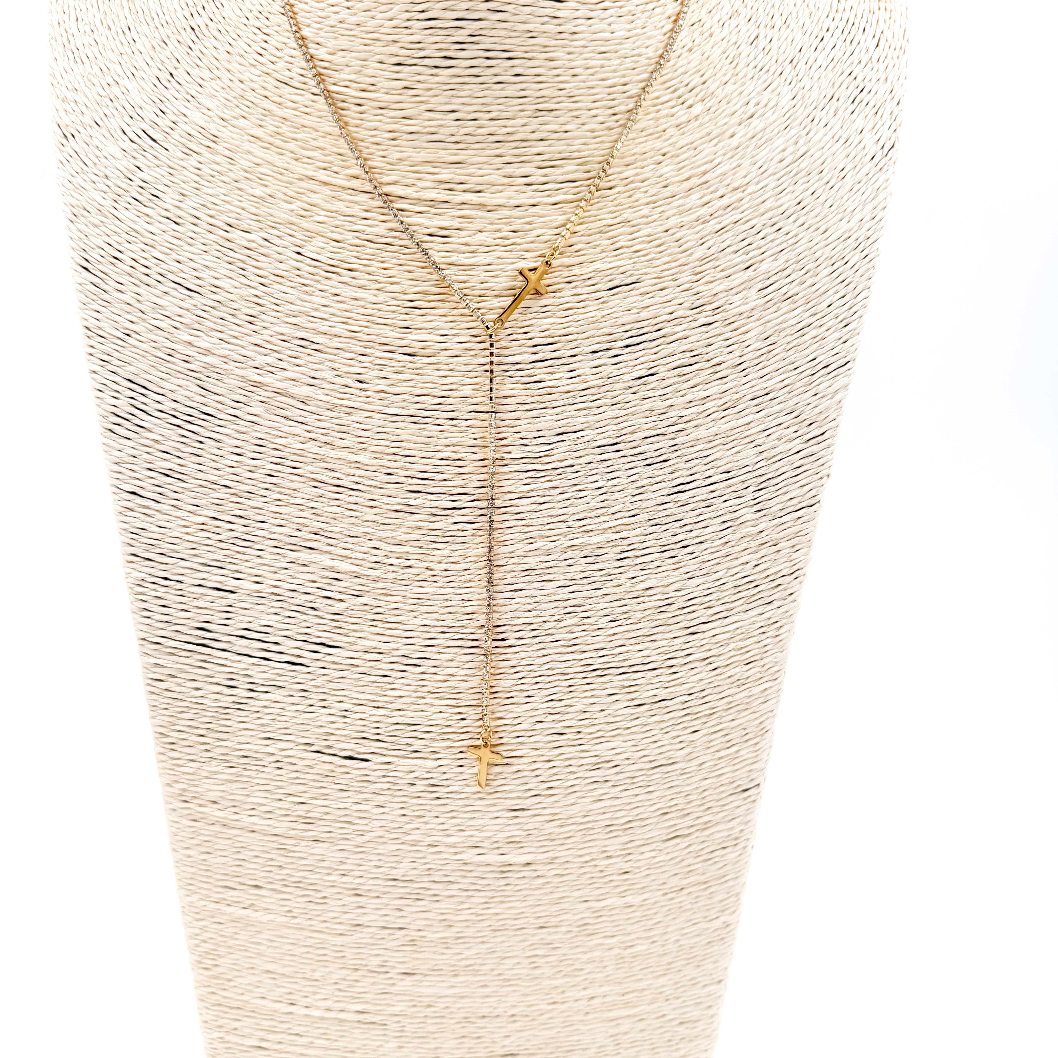 Κολιέ ατσάλινο αλυσίδα λεπτή σε σχήμα Y με σταυρό χρυσό και στρας