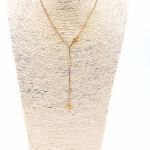 Κολιέ ανοξείδωτο ατσάλι με ιδιαίτερη αλυσίδα. Η αλυσίδα είναι λεπτή σε σχήμα Y. Μήκος κολιέ: 27 εκ. Μήκος κρεμαστής αλυσίδας: ρυθμίζεται όσο θέλεις Χαρακτηριστικά: • Ανοξείδωτο ατσάλι με επιχρύσωση 18Κ • Αδιάβροχο • Υποαλλεργικό • Αντίσταση στο μαύρισμα • Γυαλιστερό φινίρισμα • Χωρίς νικέλιο Συσκευασία: Συσκευάζεται σε πολυτελές σατέν πουγκί Φροντίδα: Τα κοσμήματα από ανοξείδωτο ατσάλι 316L έχουν υψηλή ανθεκτικότητα, είναι αδιάβροχα και δεν μαυρίζουν. Συνιστούμε να αποφεύγεται η επαφή τους με διάφορες χημικές ουσίες όπως κρέμες και αρώματα ώστε να διατηρήσουν τη λάμψη τους. Καθαρίστε τα κοσμήματα τρίβοντας τα απαλά με ένα πανάκι για να απομακρύνετε την σκόνη και τυχόν ακαθαρσίες, χωρίς να εφαρμόσετε οποιοδήποτε χημικό.