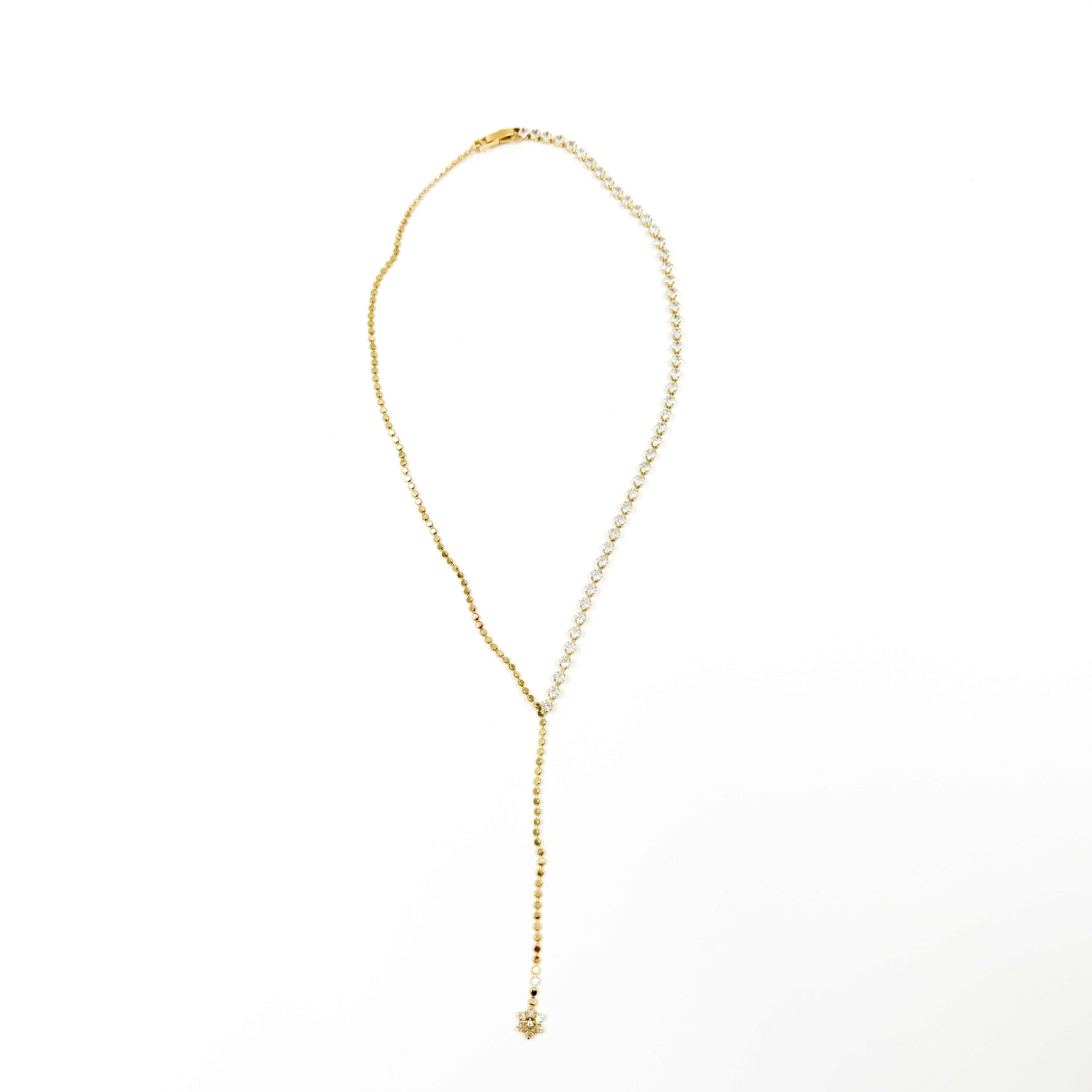 Κολιέ ατσάλινο αλυσίδα λεπτή σε σχήμα Y μισή αλυσίδα με στρας