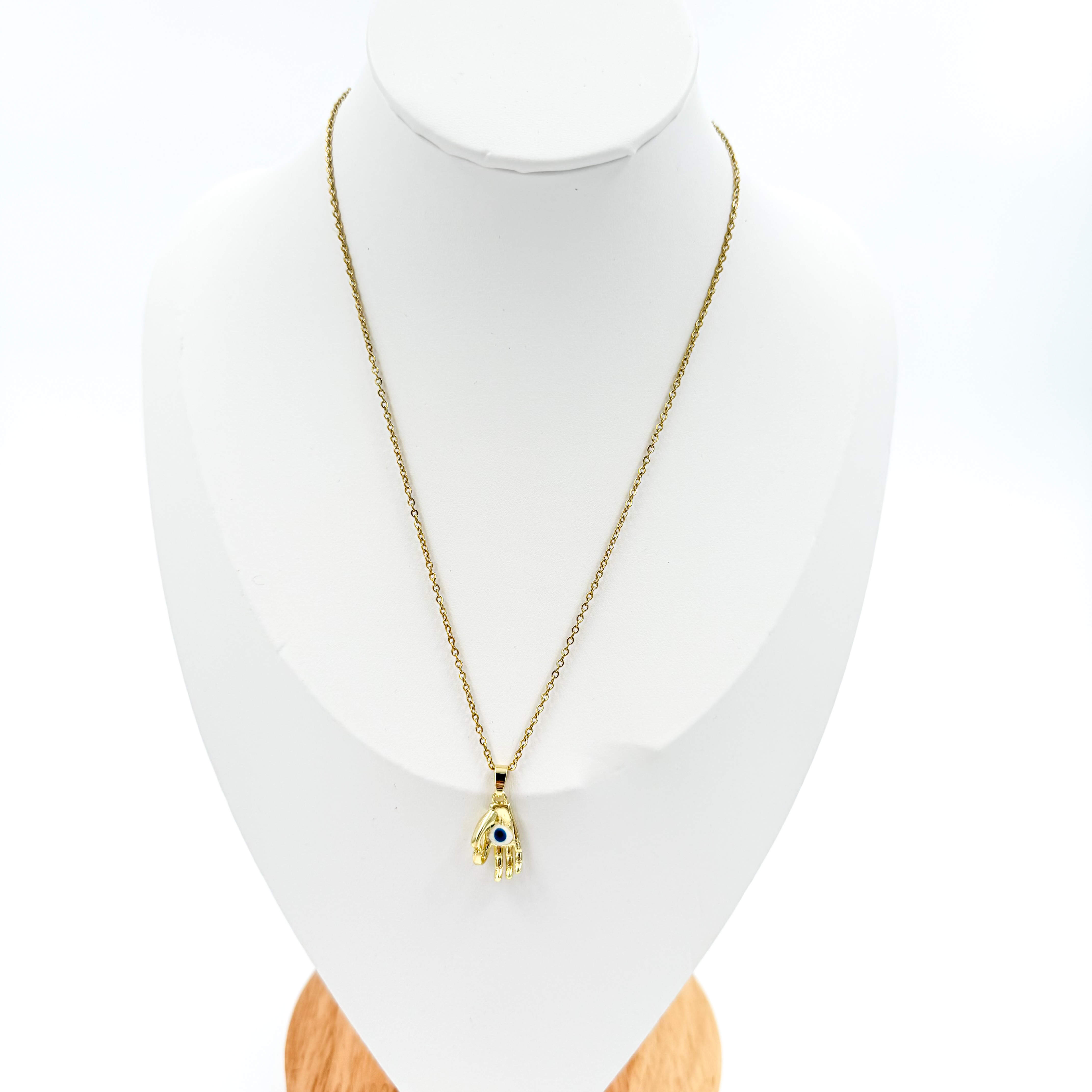 Κολιέ ατσάλινο χέρι χρυσό με μάτι