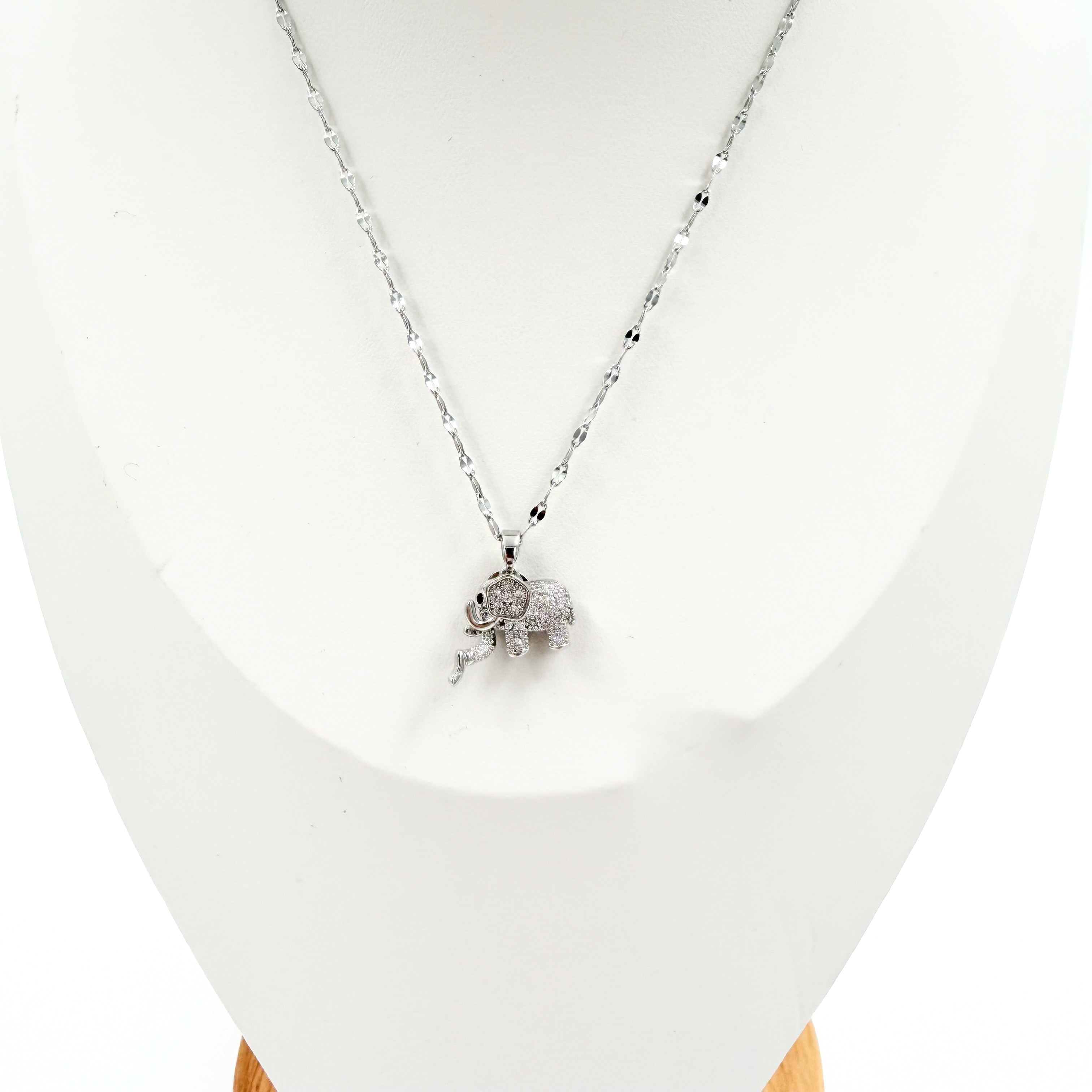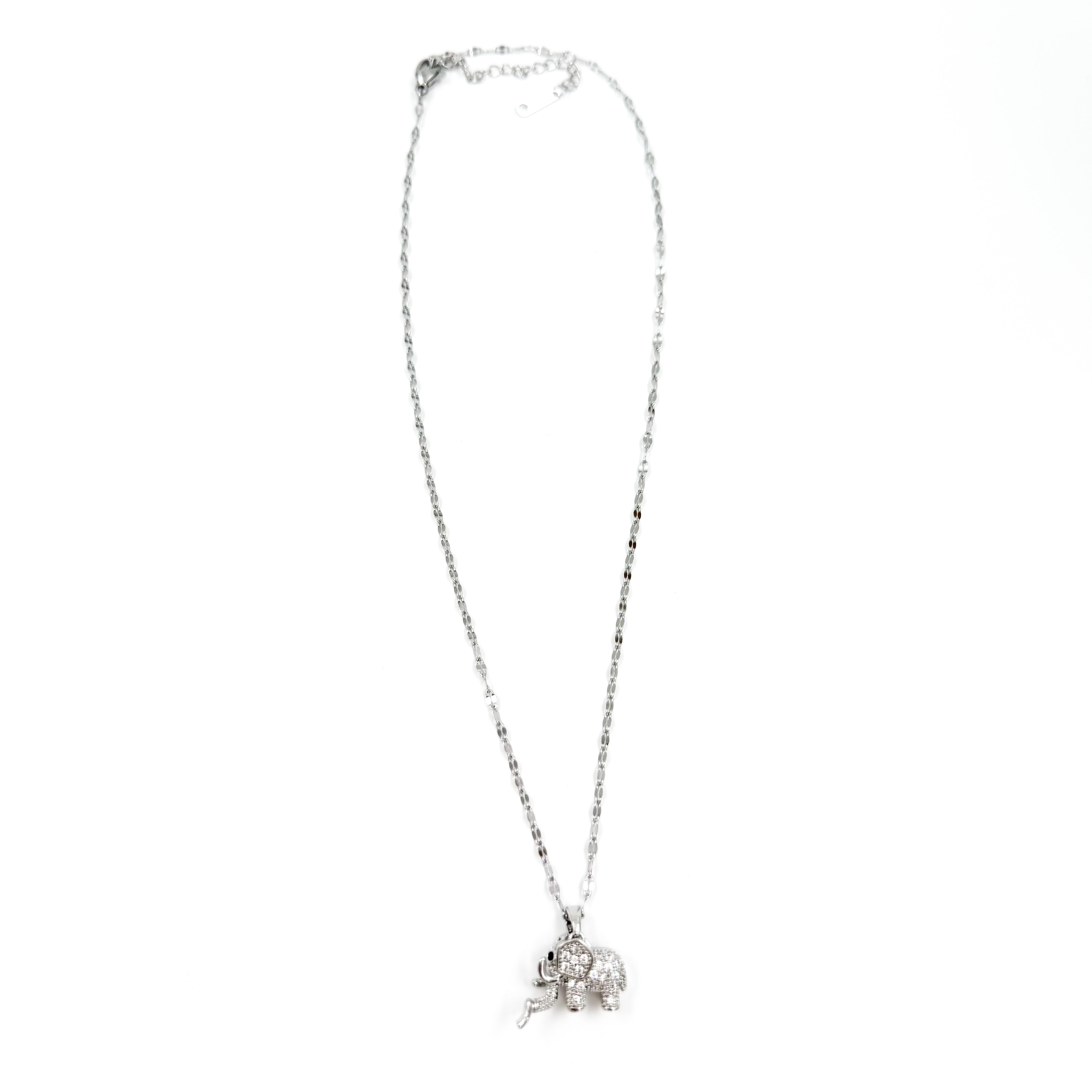 Κολιέ ατσάλινο ελεφαντάκι με στρας ασημί