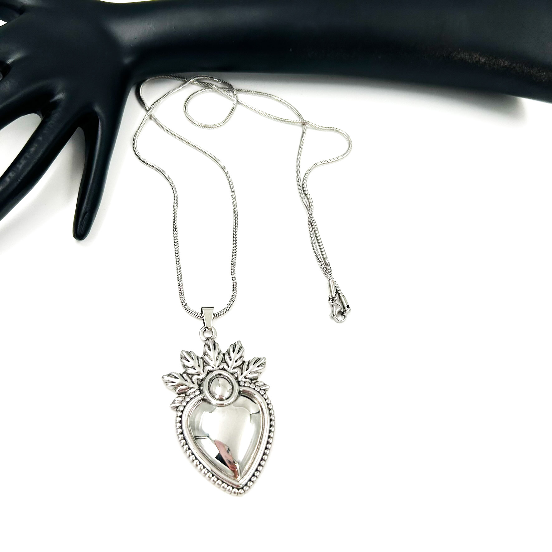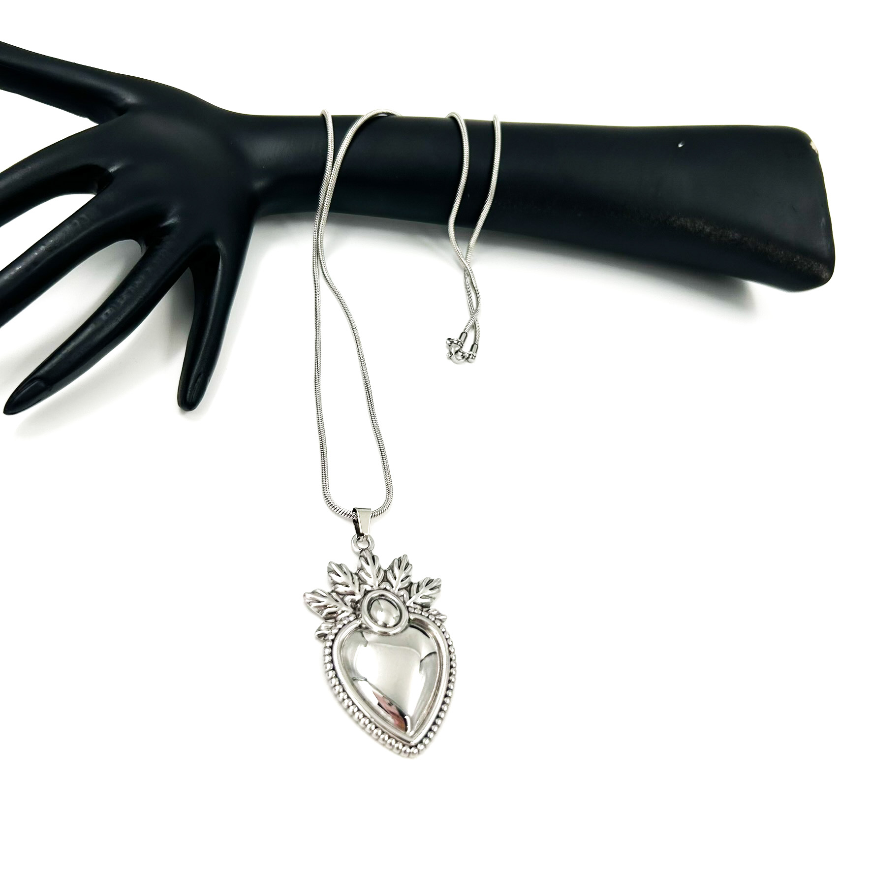 Κολιέ μακρύ ατσάλινο με καρδιά ασημί
