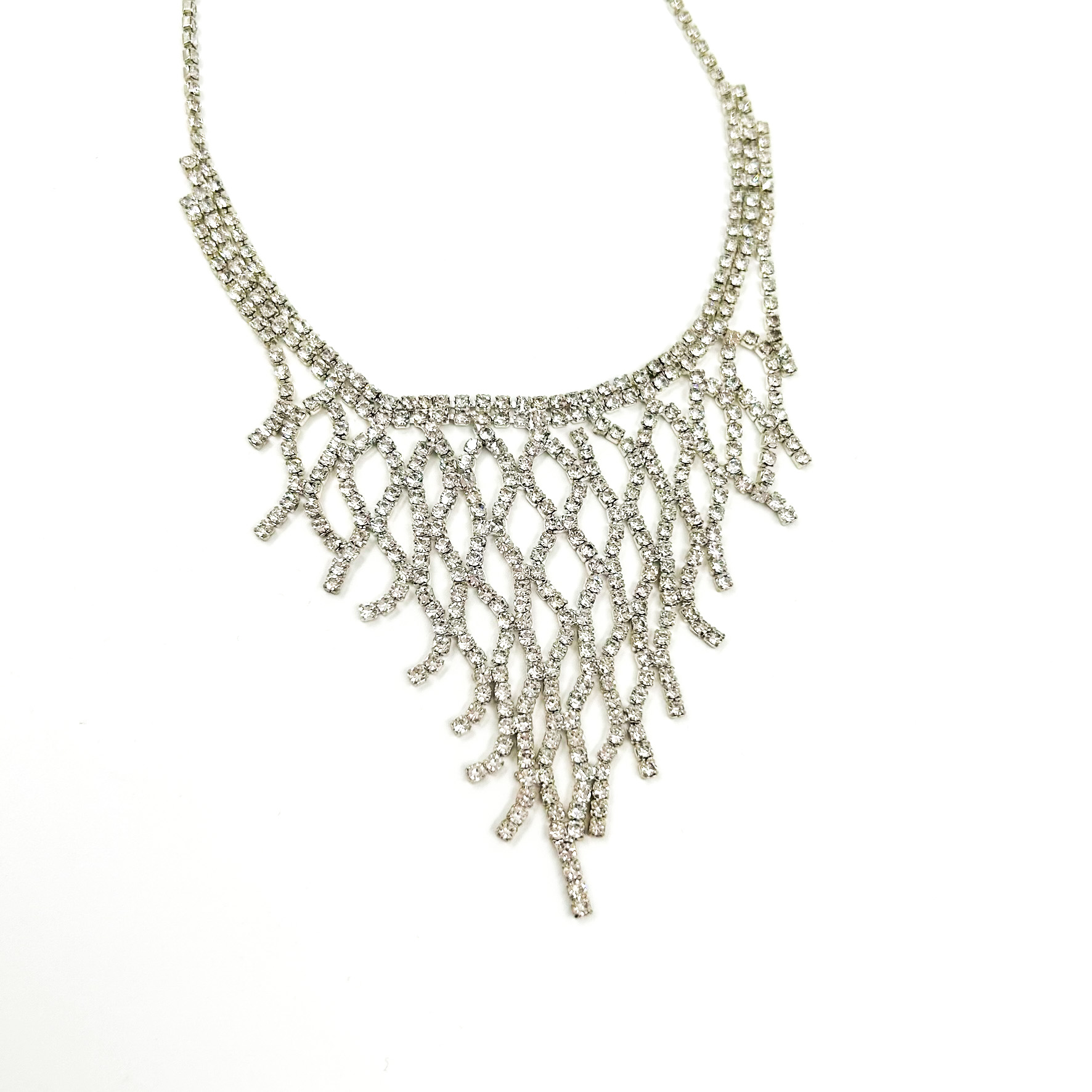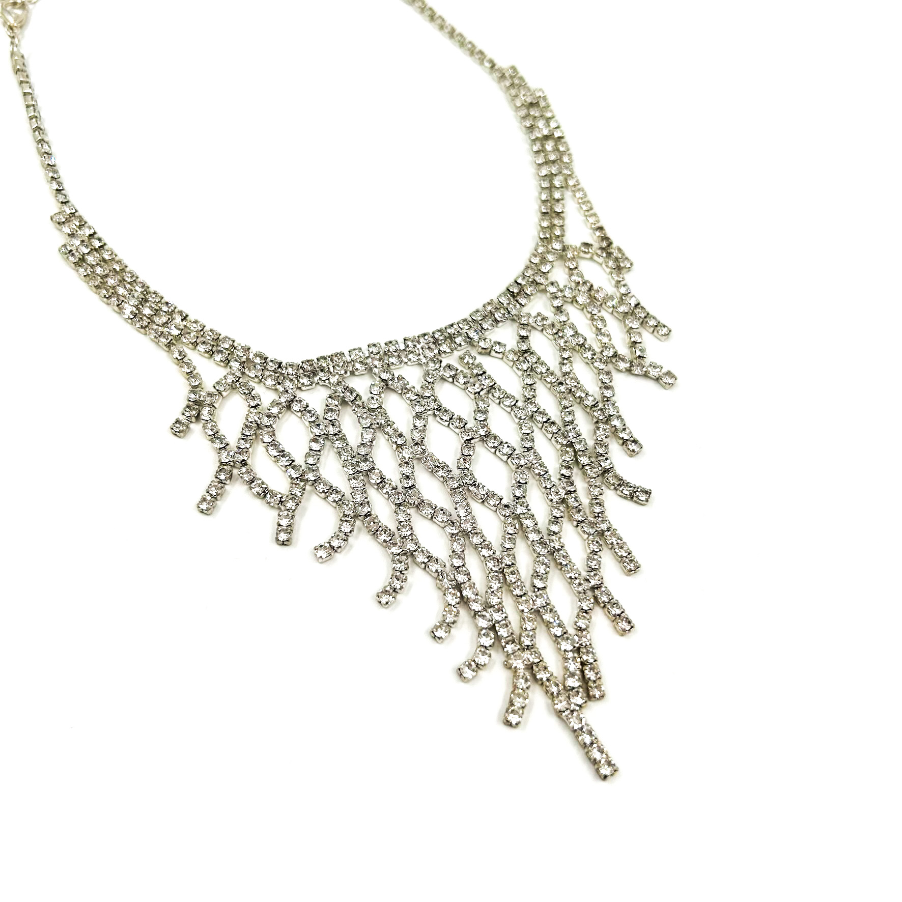 Κολιέ μακρύ με ζιργκόν σε ασημί χρώμα.