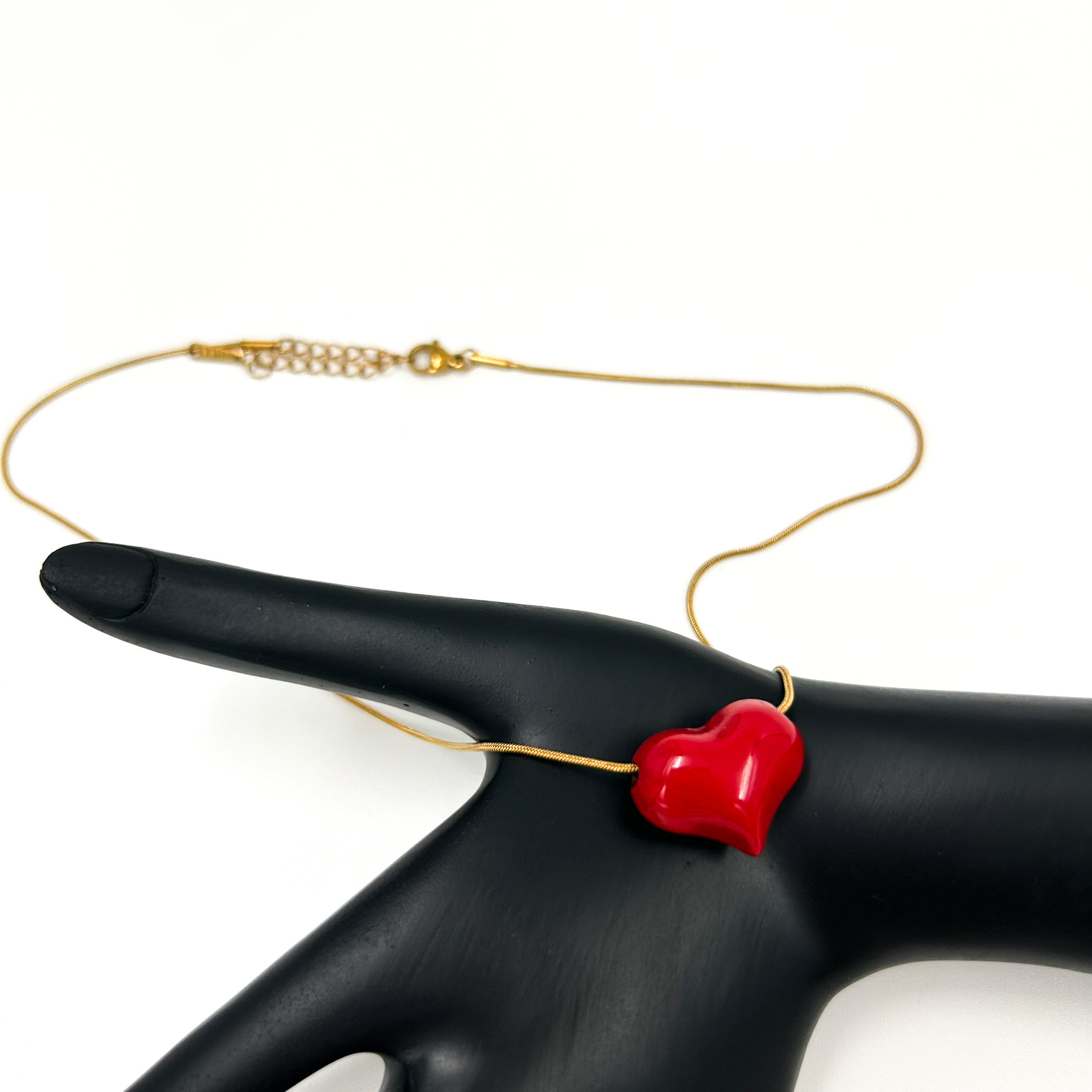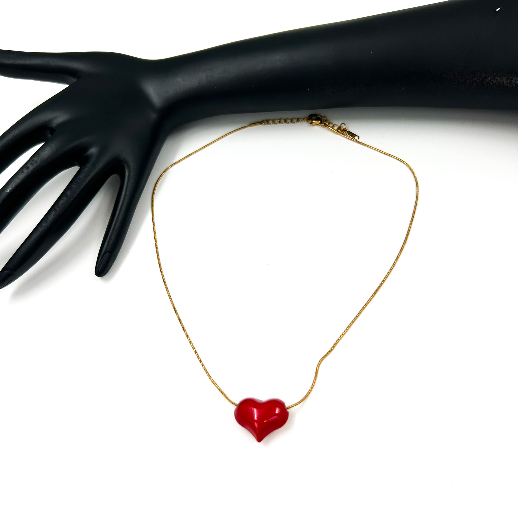 Κολιέ με κόκκινη καρδιά ατσάλινο