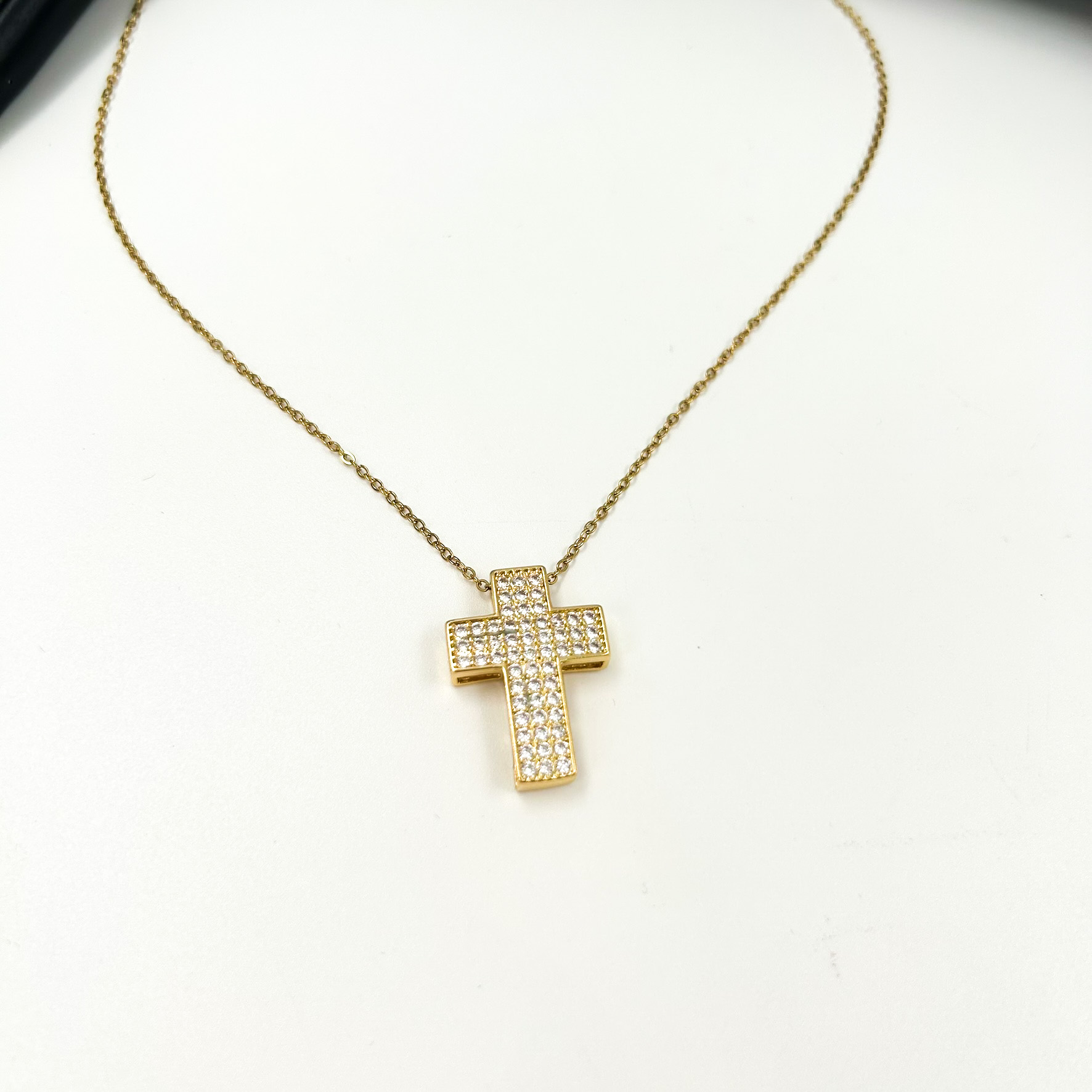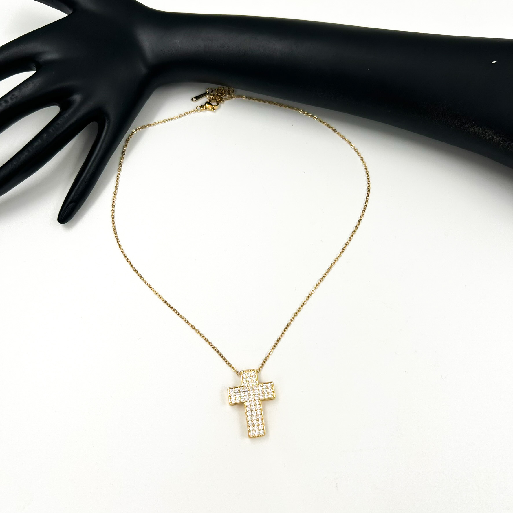 Κολιέ σταυρός με στρας ατσάλινο χρυσό