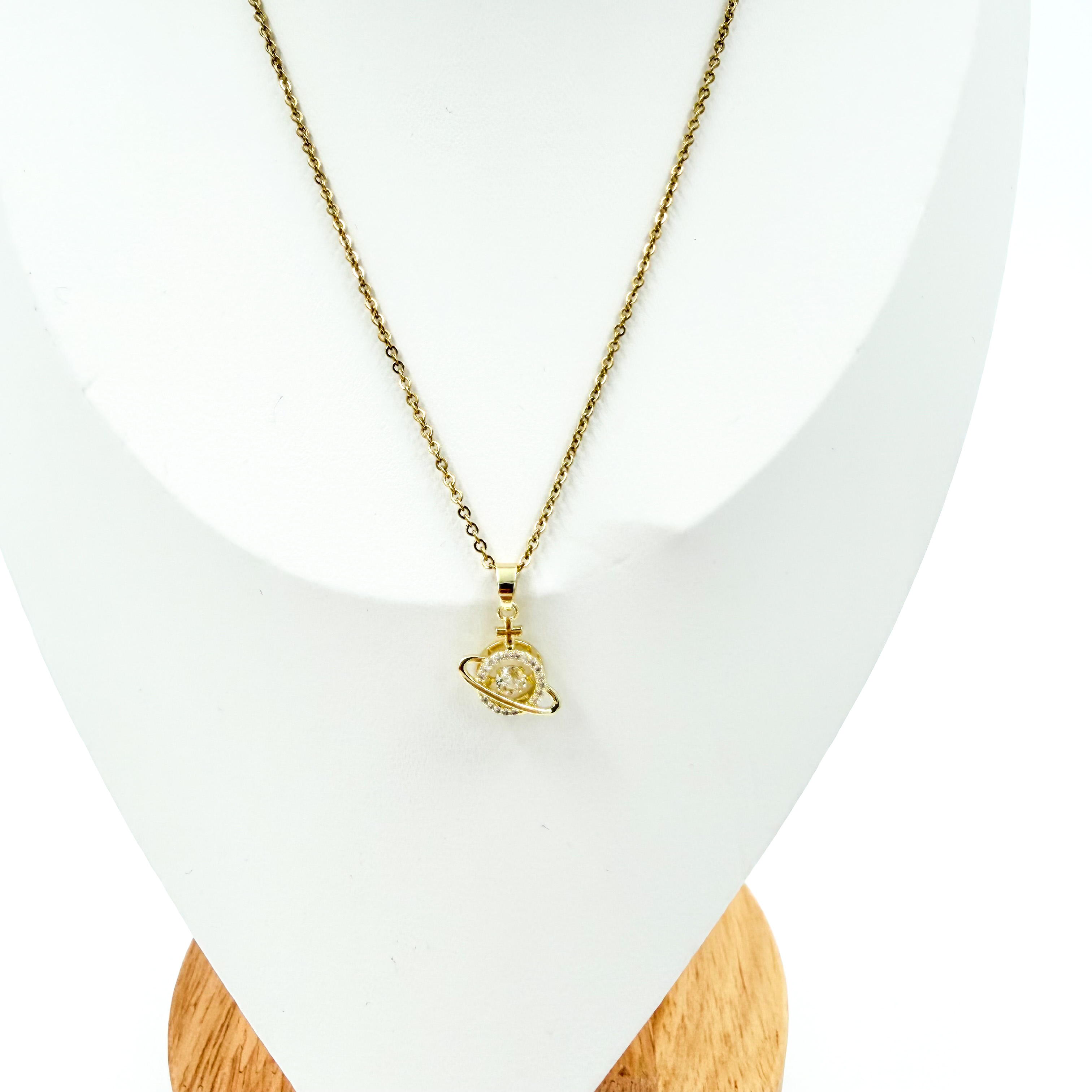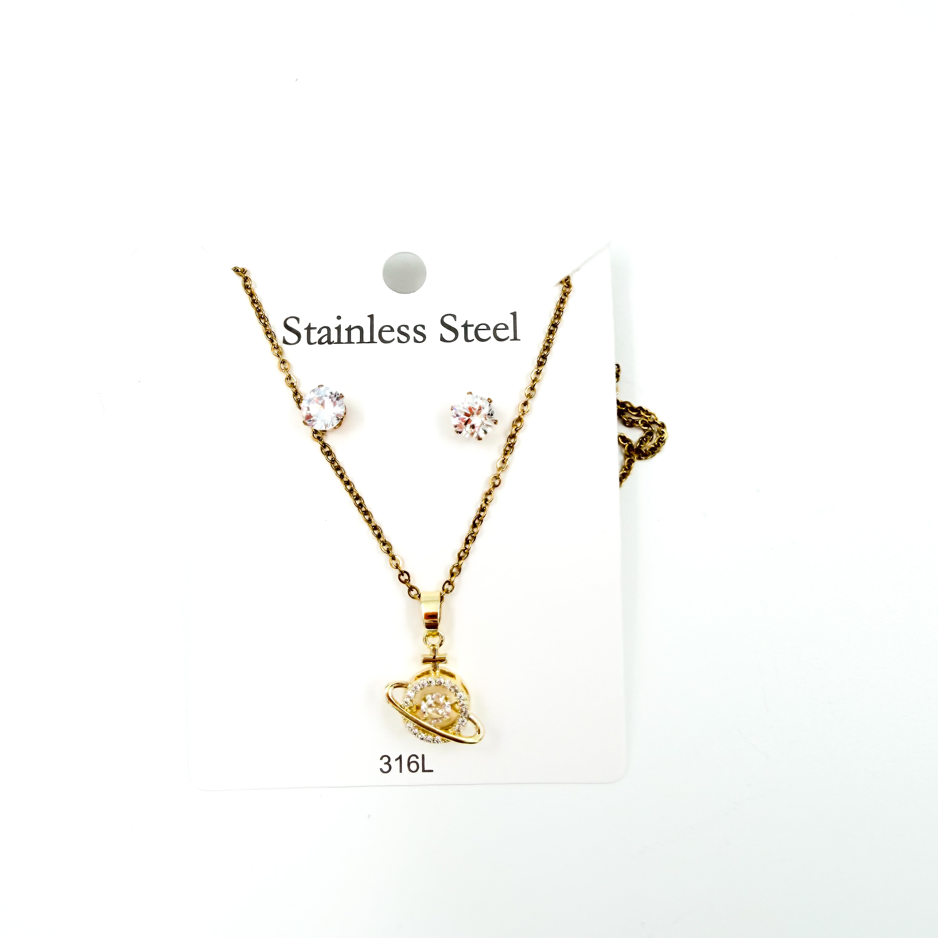 Σετ ατσάλινο κολιέ με σκουλαρίκια χρυσό πλανήτης